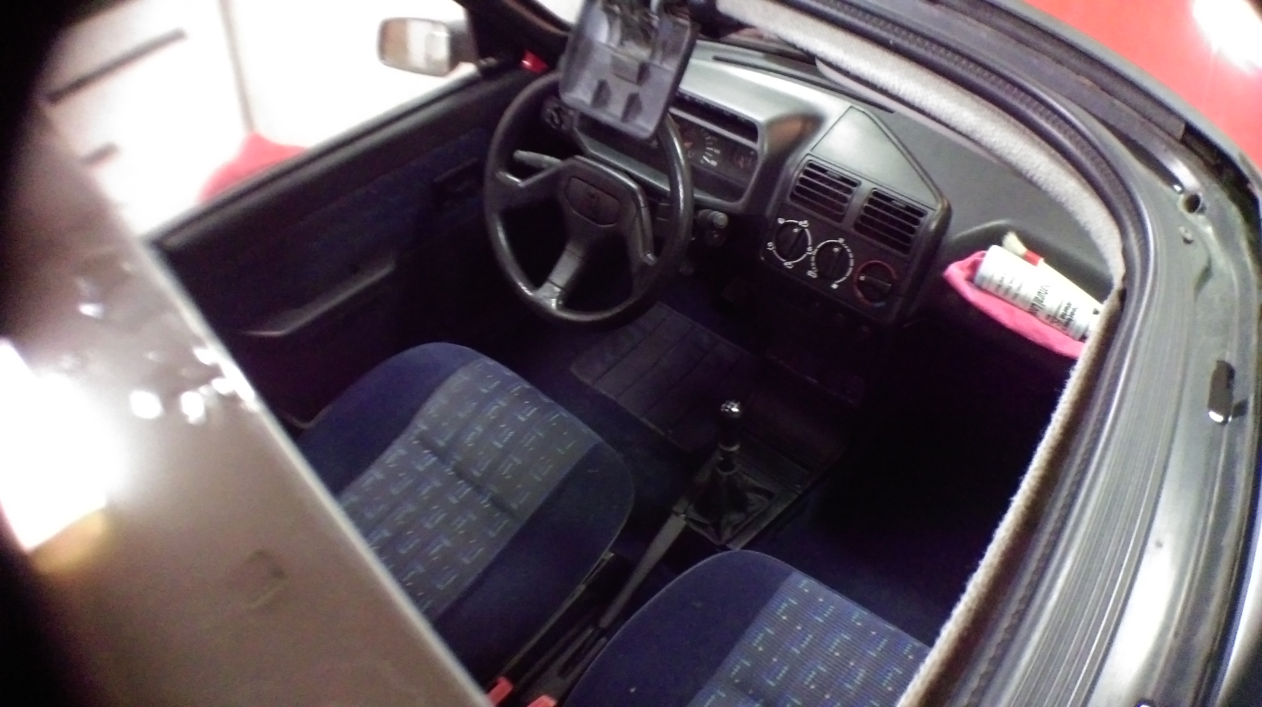 Kupiony był peugeotowski błotnik niebieski i polakierowany. Chodziłem wokół auta z 15min i nie znalazłem purchli czy korozji. Progi wyglądają bardzo ładnie i są chyba z fabryczną konserwacją. Podłoga,ile wzrokiem i pięścią sięgnąłem również dobrze rokuje.