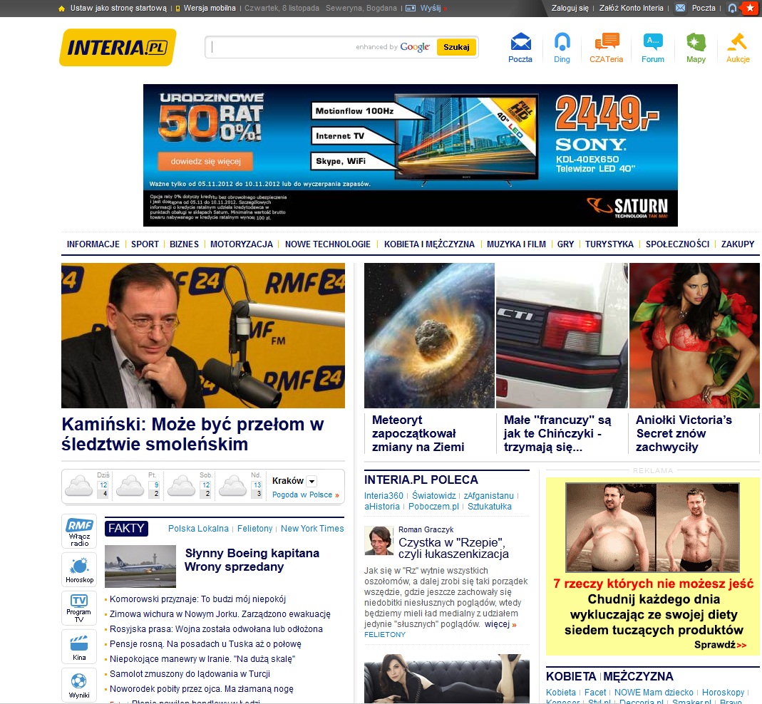A na pamiątkę strzeliłem sobie printscreena strony głównej Interii, gdzie dupka CTI pojawiła się w dziale "Warto Zobaczyć"