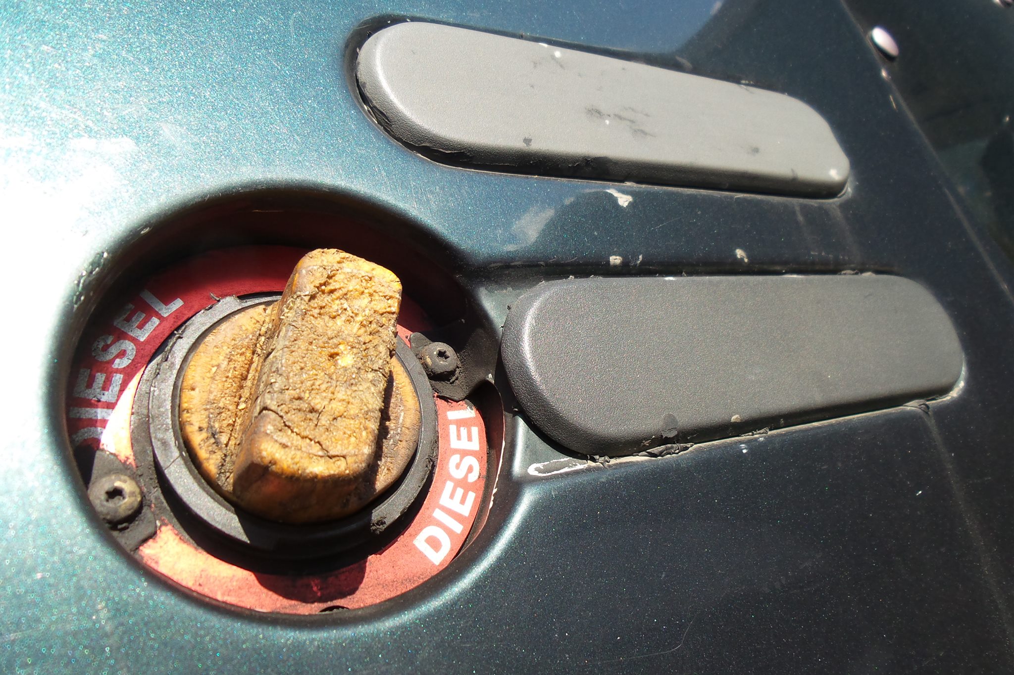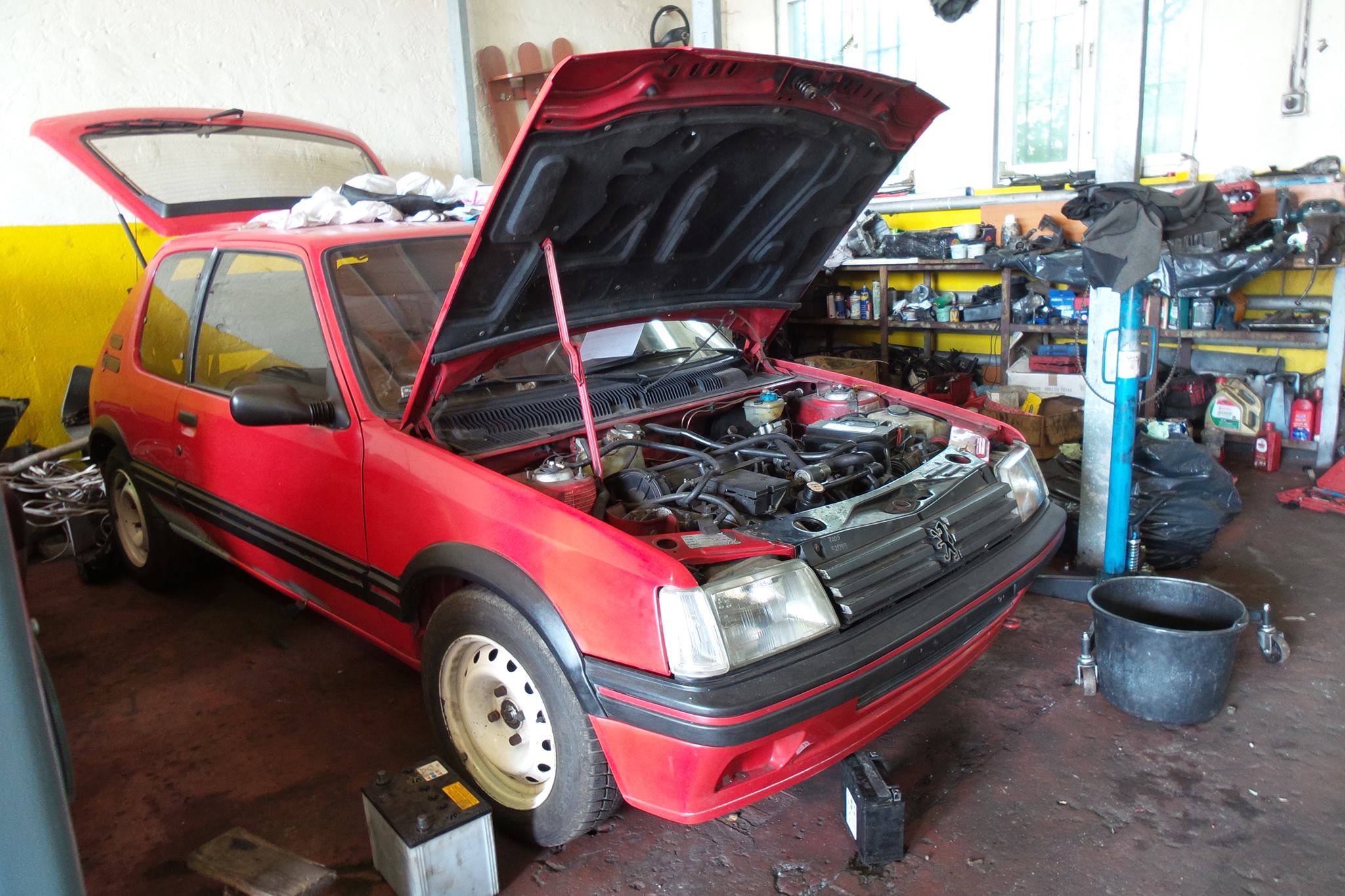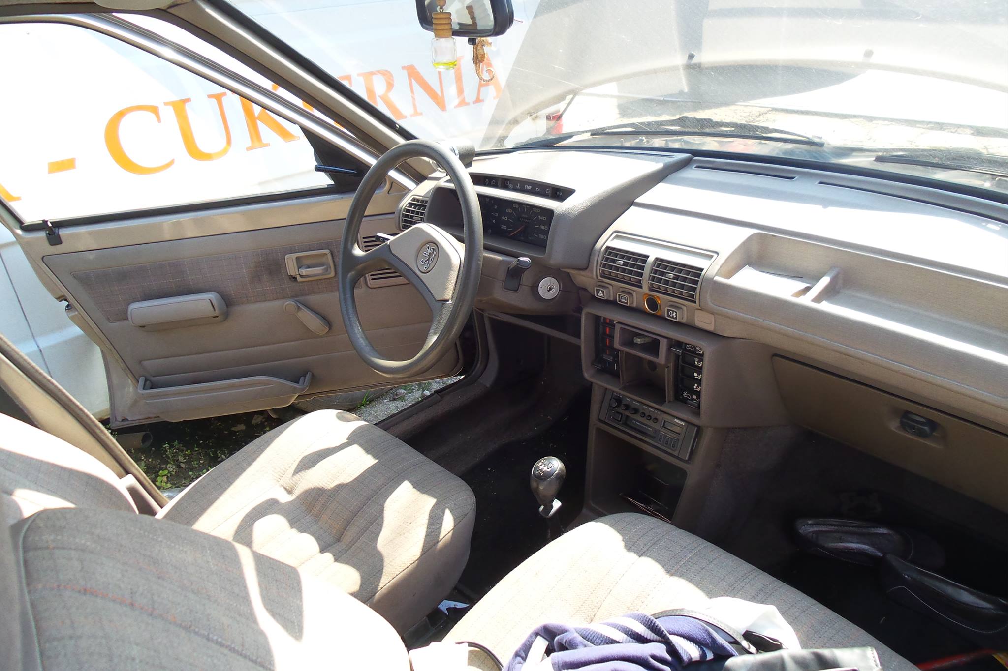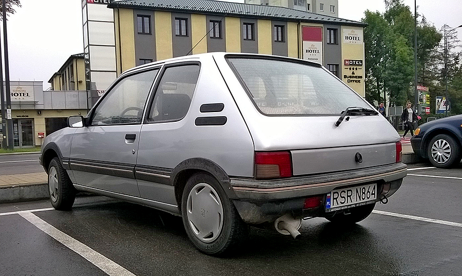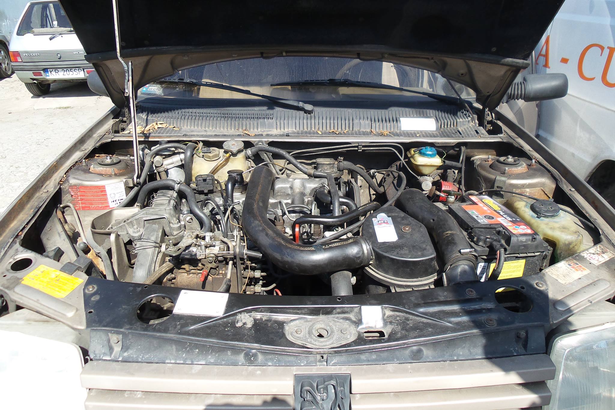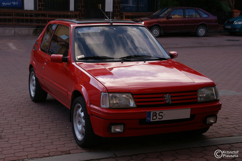 Z właścicielką GRD pogadałem (była z teściem). To młoda dziewczyna, jeździ 205-tką jako pierwszym autem. Auto sprowadzone z Belgii jako nowe, a potem jeździło w Krakowie u starszego pana, służąc mu do śmierci. Trochę pognite, numery nadwozia spiłowane, nabite nowe plus tabliczka zastępcza. Auto rocznik 1985. W środku trochę plastików połamanych no i brud, kurz, ale fotele niewysiedziane, kiera nawet fajna. Ale najfajniejsza rzecz, to silnik i skrzynia. Motor cyka jak zegareczek, a biegi wchodzą niczym w nowym samochodzie. Szkoda tylko, że buda już mało perspektywiczna.