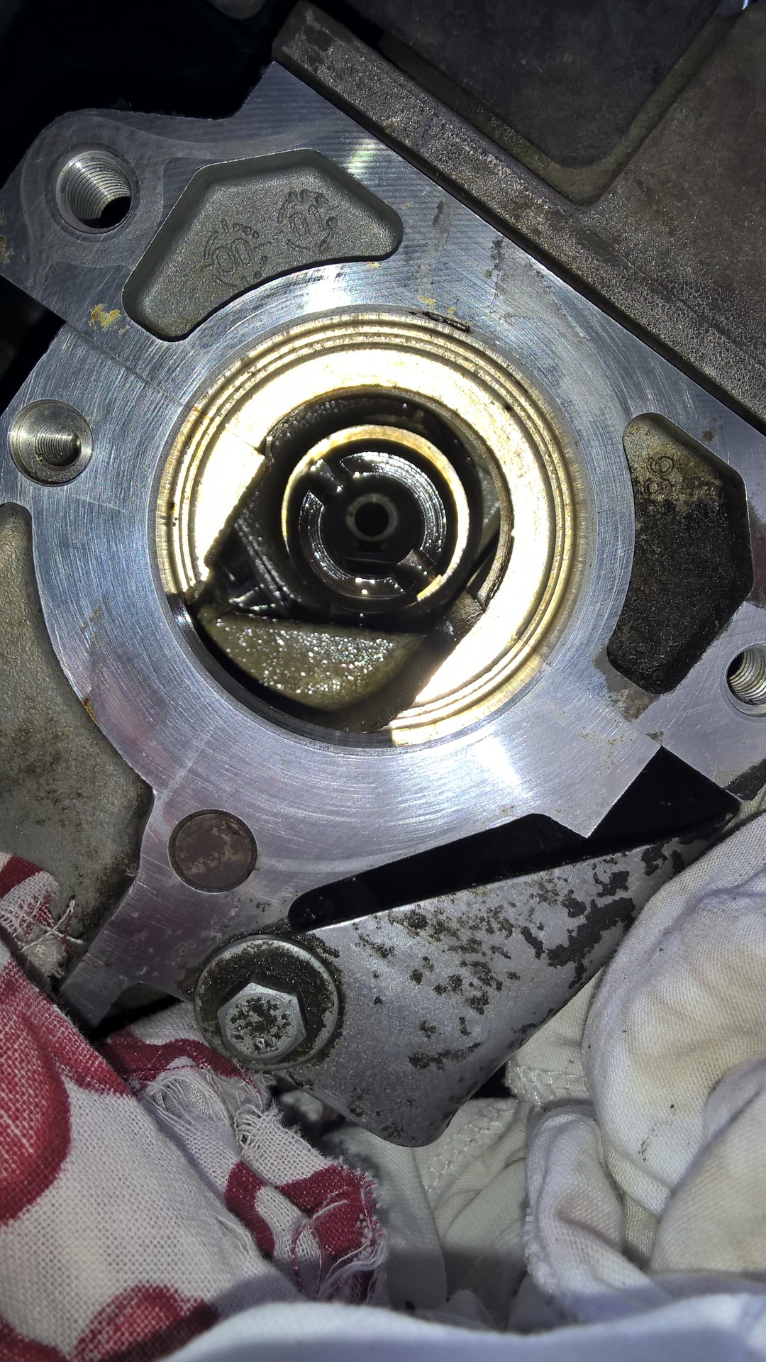 Potem już tylko montaż. Warto zwrócić uwagę na to by podczas całej operacji nie kręcić wałkiem pompy, wtedy nie mamy problemu z utrafieniem na wałem rozrządu.