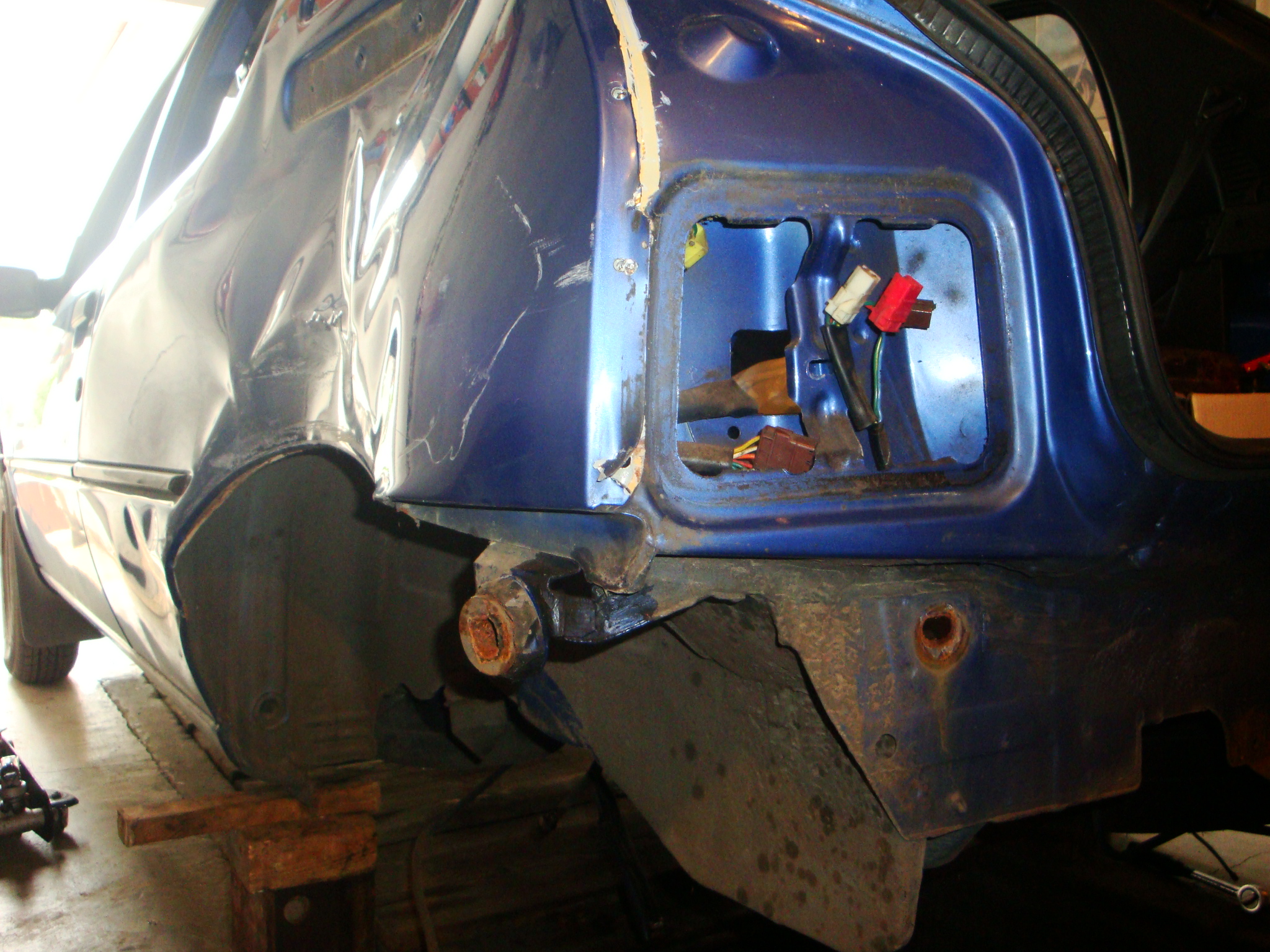 Na razie zamieszczam kilka zdjęć z kolizji drogowej i prac związanych z wymianą tylnej belki , która w wyniku kolizji drogowej wygięła się.