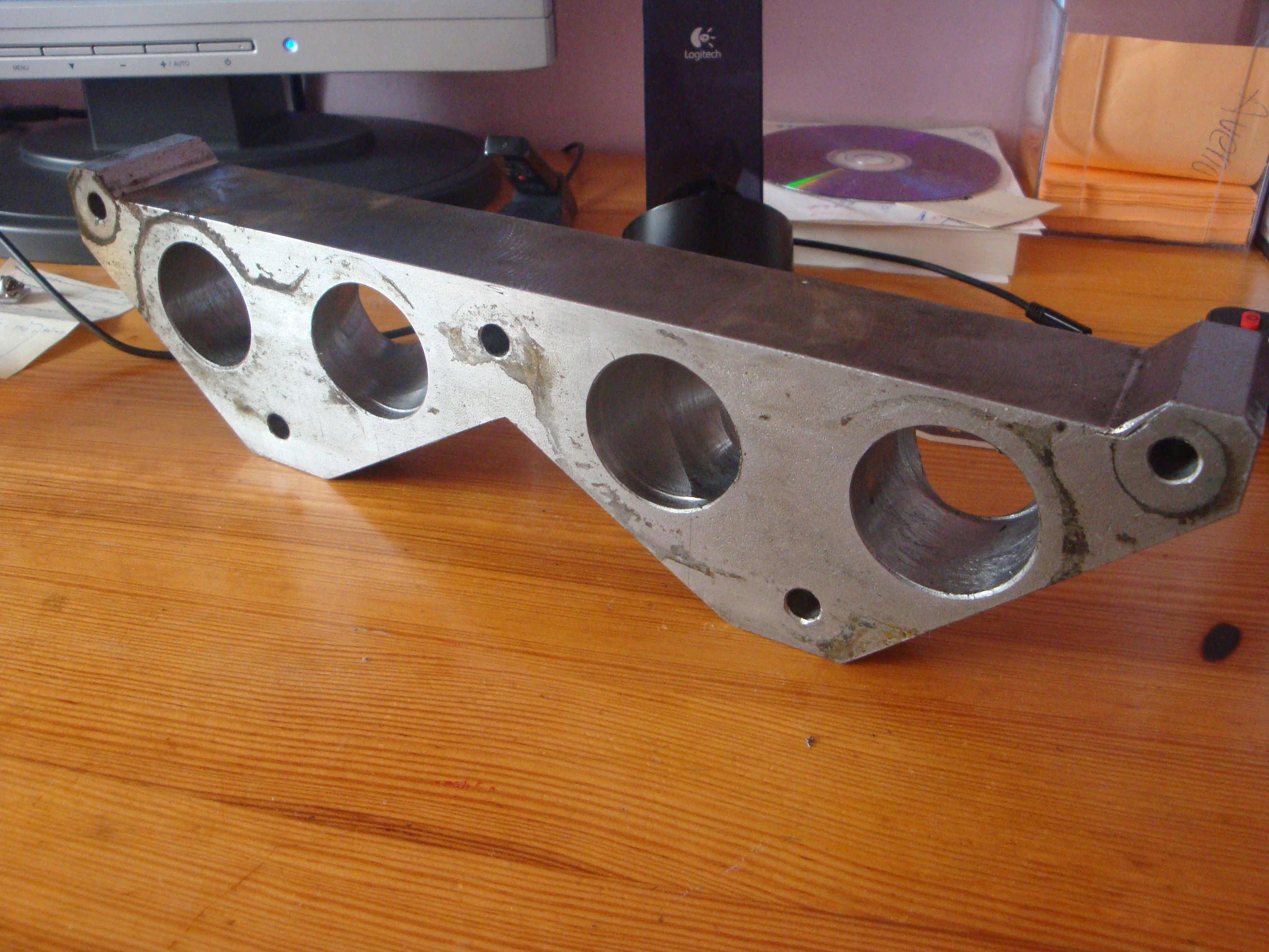 Przyjechał kolektor ssący od 1.4. Pierwsze przymiarki nowej przepustnicy WEBER-SOLEX. Muszę przerobić kolektor tak, aby przepływała przez niego ciecz chłodząca. Głowica w 1.4 KFT nie ma już kanałów wodnych do kolektora dolotowego.