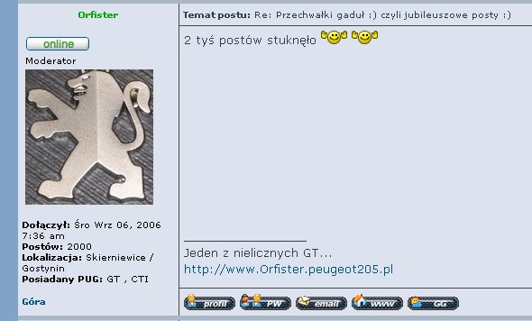 i Panowie... oto roku pańskiego 2007 po 14 miesiącach, 25 dniach i nie wiem ilu godzinach mojego jestestwa na forum około godziny 16:45:58