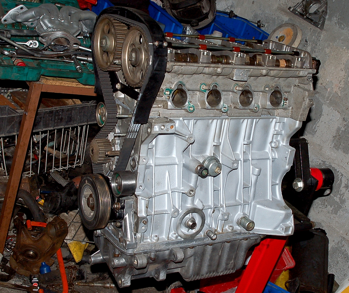 Nastąpił mały update prac, przykryte zostały pasek rozrządu oraz wałki, zamontowano alternator, chłodniczkę oleju, czujniki, króciec wodny, dolne mocowanie silnika ( nowa tuleja Sasic ) itp itd...