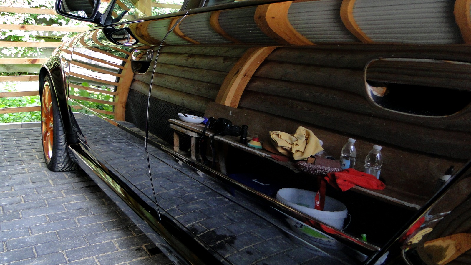 Wszystkie zuta poza tymi super najs maja tzw more, lub skorke pomaranczy - jak kto woli. Wlasnie ta nierownosc powloki powoduje znacznie pogorszenie odbic i szajnu, nawet jezeli lakier jest w 100% wolny od rys. Co z tym zrobic? Zabieg zwie sie wet sanding i polega na idealnym wyrownaniu powloki, przy okazji jakby automatycznie robi sie korekte lakieru. Wbrew pozorom, nie zbiera sie duzo wiecej lakieru jak przy "zwyklej korekcie" poniewaz scina sie pagorki. dochodzac do zaglebien w laierze - zeby nie byc goloslownym korekta przyjmijmy 3-5mikronow, wet sanding 5-8mikronow, sa to oczywiscie ogolne i pogladowe wartosci, ktore moga roznic na innych samochodach. Temat "mokrego piasku" nie jest mi obcy, bo robilem juz w ten sposob maske w swoim audi i dokladnie wszystko mierzylem. W sobote miernika nie mialem, bo stary pozyczylem a nowy przyjechal dzis, poza tym samochod nalezy do mnie, wiec krzywde zrobilbym tylko sobie. RS6 ma fabryczny lakier, niestety dotkniety fabryczna mora, postanowilem sie jej pozbyc, nie moze byc tak, ze "szefc bez butow chodzi" Zrobilem na potrzeby prezentacji kawalek drzwi pasazera, na zajawke dwie fotki, przed i po sadze, ze siwetnie oddaja efekt