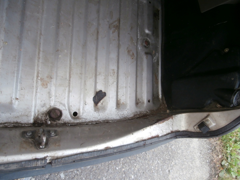 Blacharsko chyba nie jest źle, progi zdrowe, przód też (poza miejscami widocznymi na zdjęciach), do wymiany drzwi pasażera bo były klepane młotkiem... był chyba lekko walnięty w tyłek bo w bagażniku rdza i trzeba to pospawać bo odpadnie ;p, podłoga też zdrowa (poza bagażnikiem). Lakier ma jakieś drobne ryski na całej powierzchni, może uda się to wypolerować. Brak plastików na błotnikach, jeden przykręcony blachowkrętami...