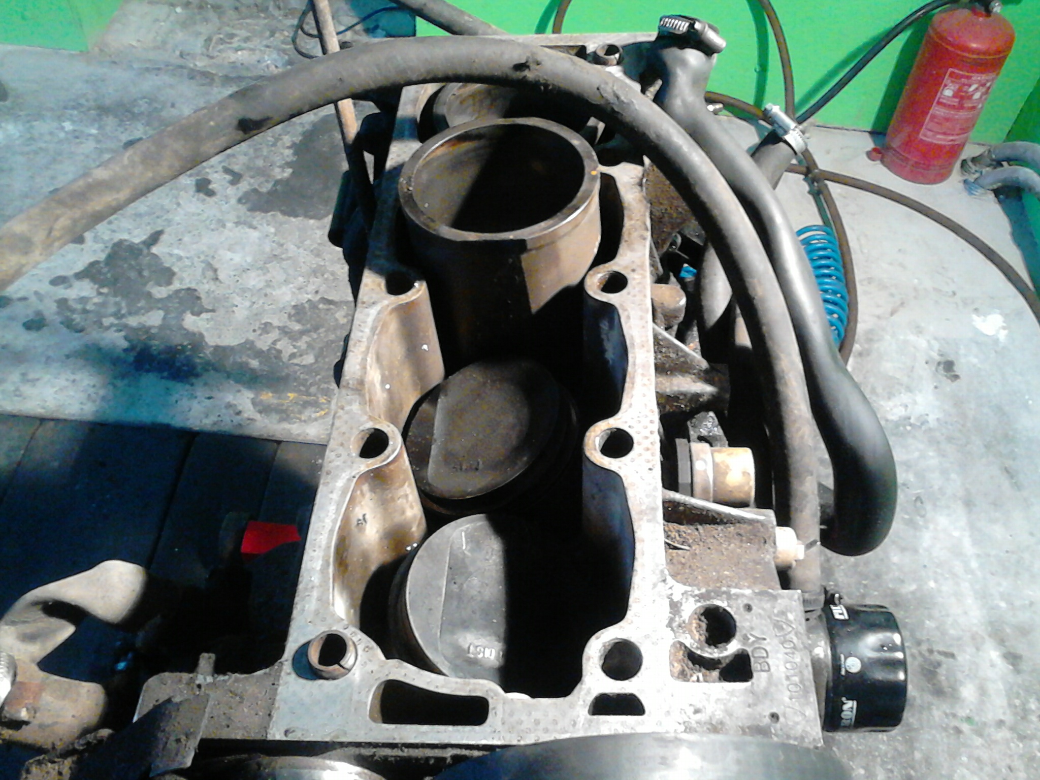 poprzedni mechanik wymieniał skrzynie biegów i sprzęgło, ja przy wyrzucaniu motora z auta po wypięciu wtyczki od czujnika temp. cieczy, patrzę na wtyczkę a tam jeden z pinów cofnięty do tyłu... efekt był taki że jetronic lał wtryskiwaczami aż miło na tłoki, z czego dwa były w złej kondycji. nie wiem jak długo poprzedni mechanik robił "próby" ale dziś, spuszając olej zeszło tego aż 8 LITROW!!! nie ma sie co dziwić że odma zaciągneła olej z paliwem( olej był rzadki jak woda i walił jak by do było samo paliwo) bo oczywiście były już w nim przedmuchy no i przez to hejzel niesamowity..... koniec końców głowica pójdzie do uszczelniena zaworów, polerowania kanałów i porządnego planowania a wał do szlifu i wyważenia z korbami i tłokami. jestem spokojny bo gość robi silniki wyścigowe wiec będzie git( ogólnie proponował mi jakieś tłoki od diesla frezowane z góry powiększenie tuleji cylindrowych i ich utwardzenie kute pierścienie i panewki korbowodowe i powiedział że spokojnie wyciągnę 180km bez turbo ale cena mnie powaliła więc na razie odpuszczam takie mody:(:( ) tak więc trzeba pozbierać kase a leży na ulicy i do dzieła:P