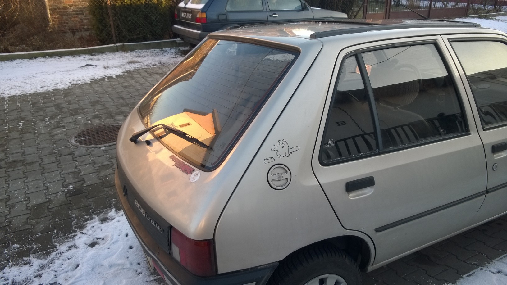 Właścicielem jestem od ponad 2 lat. Jestem 3 posiadaczem autka, samochód przyjechał początkowo z Niemiec. Ja musiałem jechać po niego do Olsztyna. Pamiętam że od zawsze chciałem mieć ten samochód ;]. Jego początkowy stan był beznadziejny - mocno zdewastowana tylna belka, silnik gasnął na światłach, cholernie głośno w środku ( brakowało części wydechu), stare łyse opony, tylna wycieraczka nie chodzi, do wymiany chłodnica i zużyte zawieszenie. Trochę tego było, dlatego cena też nie robiła wrażenia ;] Zdradzę że kupiłem go dosyć tanio ( poniżej 1000 zł )