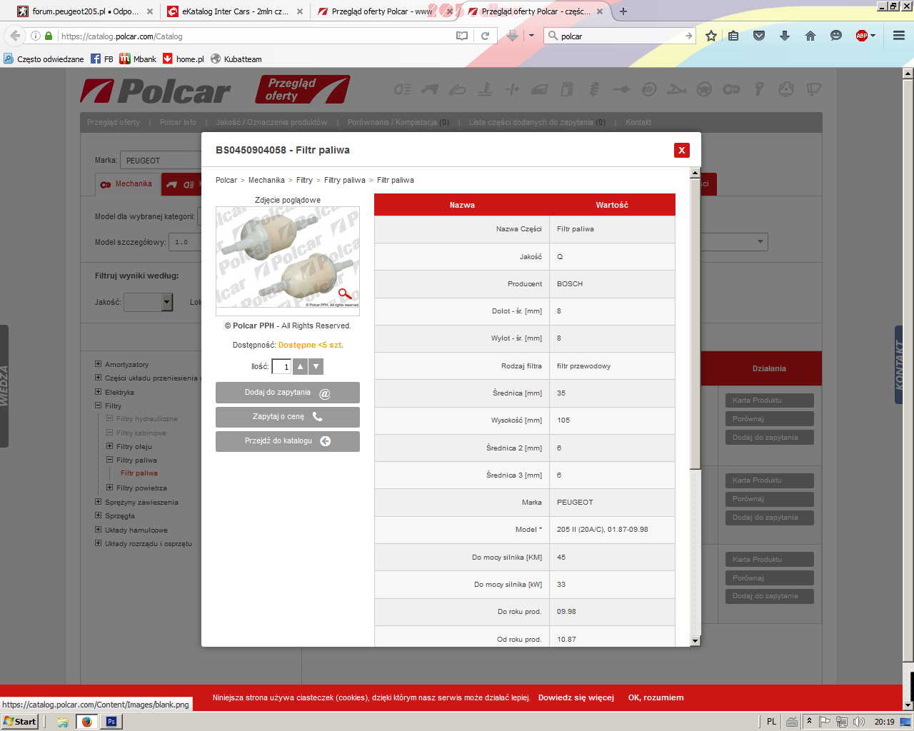 Dzięki, ale w tych katalogach hurtowni motoryzacyjnych z tego co widzę są takie same filtry jak w zwykłych sklepach internetowych - czyli kompletnie inne od tego co jest u mnie (u mnie przewody paliwowe są z boku filtra, nie na górze i na dole). Zmiana kryteriów wyszukiwania na 1.0 niestety też nic nie dała.