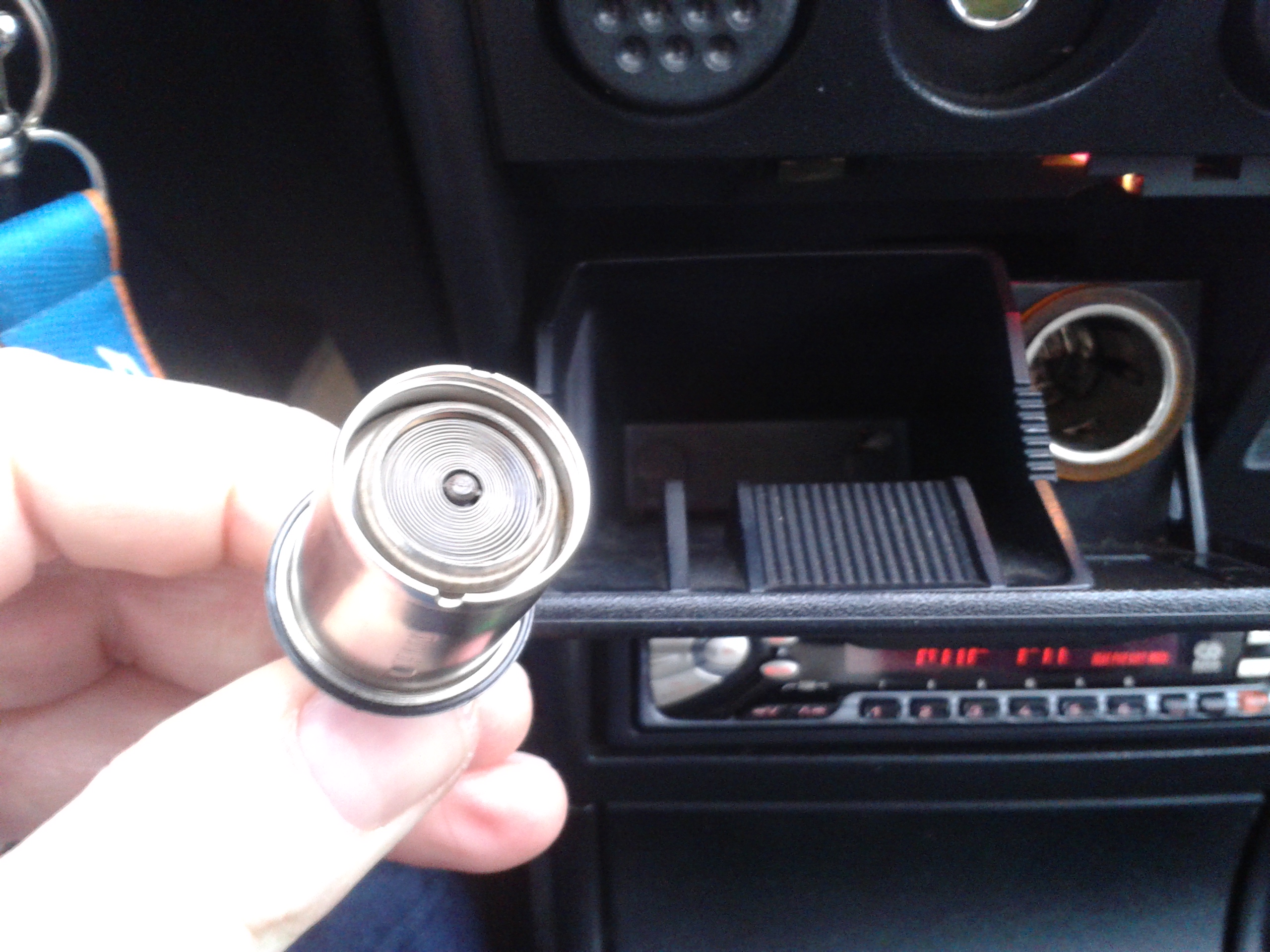 Jak już jesteśmy we wnętrzu, to prócz małego remanentu, pokusiłem się od razu na wsadzenie radia. Oczywiście takiego z epoki, czyli radioodtwarzacza na kasety. Jako, że jakiś czas temu wszedłem w posiadanie zupełnie nowego, zapakowanego w fabryczne pudełko radia JVC z lat 90-tych z podświetlaniem bursztynowym, to wybór mógł być tylko jeden. Montaż radia zajął dosłownie 5minut - zamontowanie stalowej kasety, podpięcie kosteczki i anteny, wsadzenie radia i włala! Radio pasuje do reszty wnętrza, jak ulał , a i gra całkiem przyjemnie :D