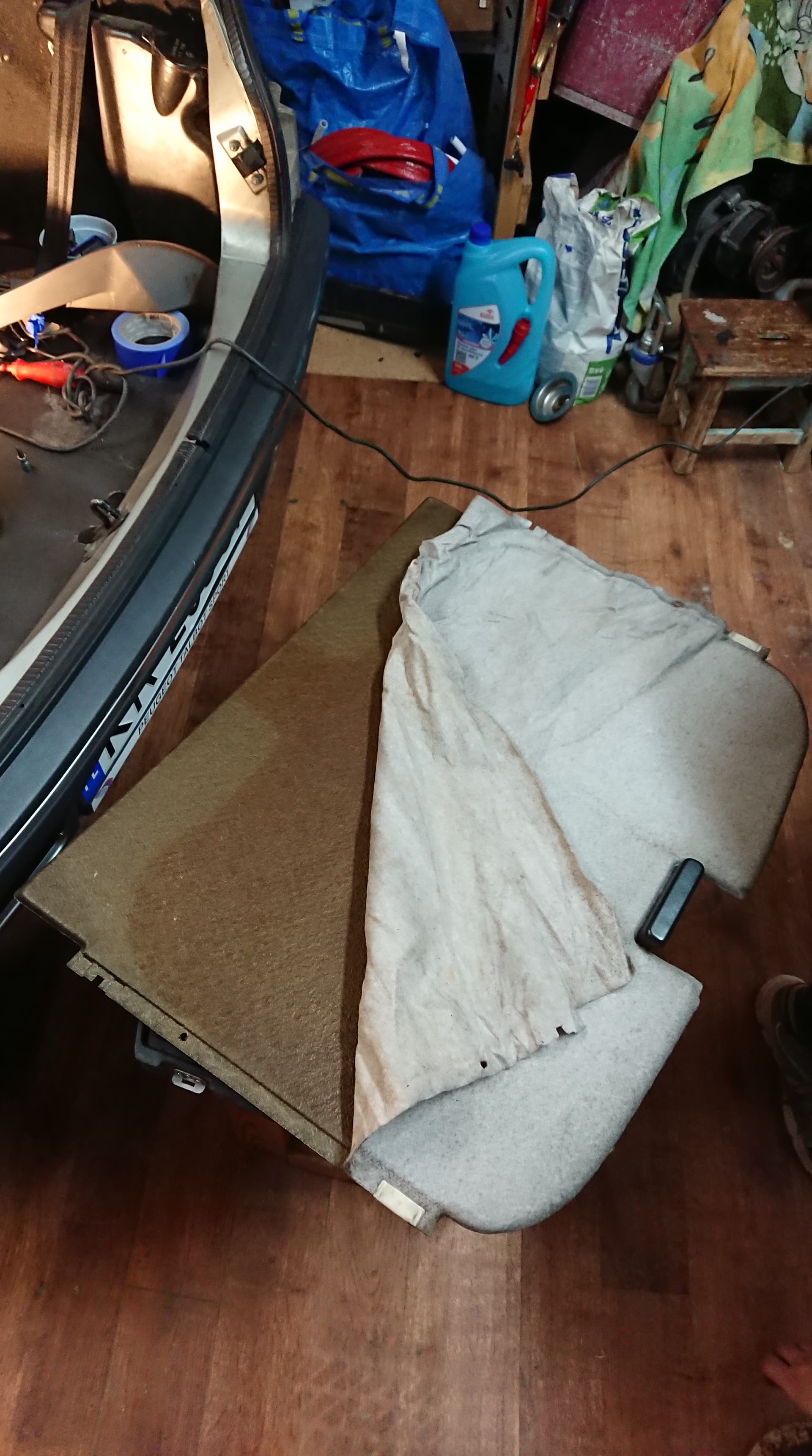 Rafał z synem Adrianem, czyli obecni właściciele, zabrali się nawet za coś, co zawsze odkładałem na później - sklejenie tapicerki rolety szyberdachu.