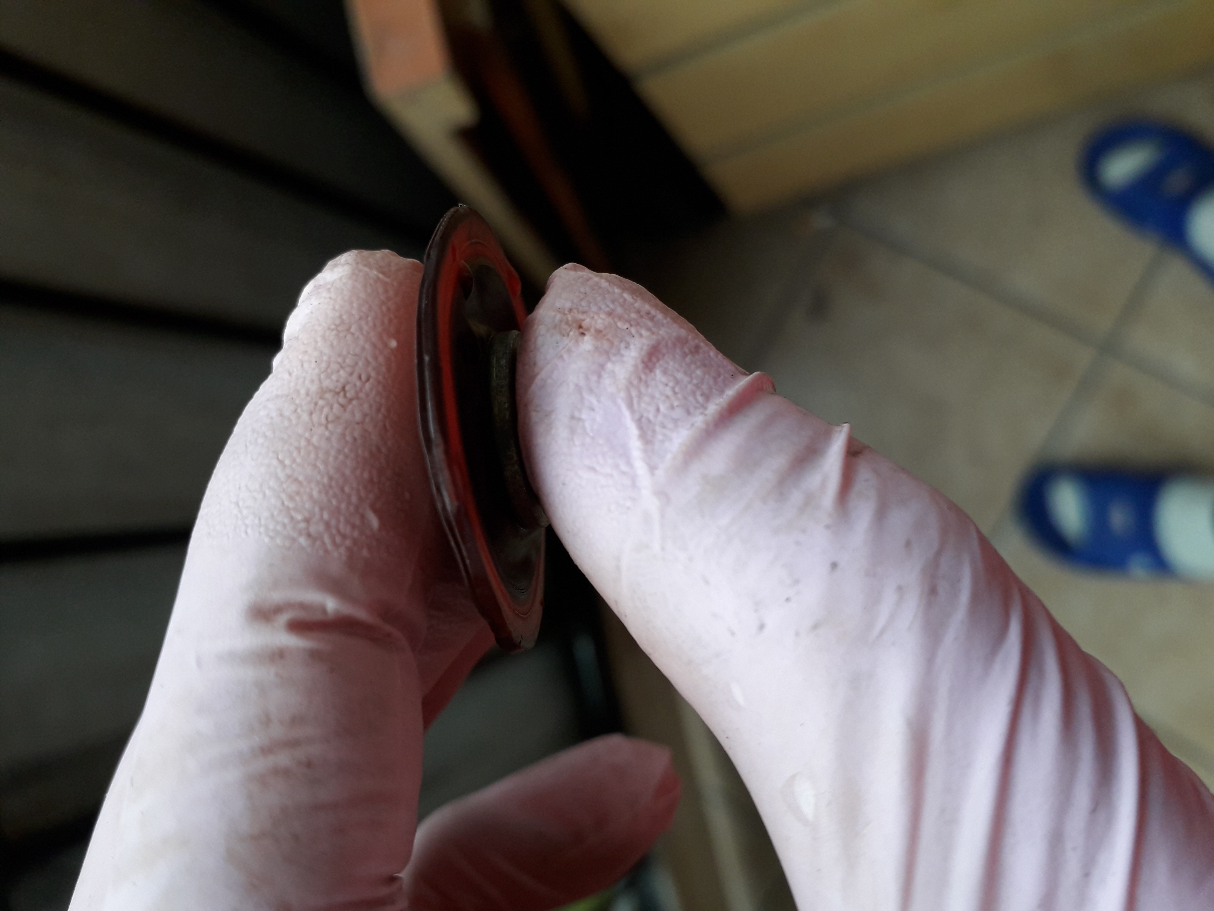 Zajrzałem też do regulatora ciśnienia - nie jest w najlepszym stanie. sprężynka spoko, ale jak odkręcałem to nie pchała kopulkę na góre, więc mogło nie działać poprawnie. Najgorsze to membrana - rozwarstwiona i zmarszczona.