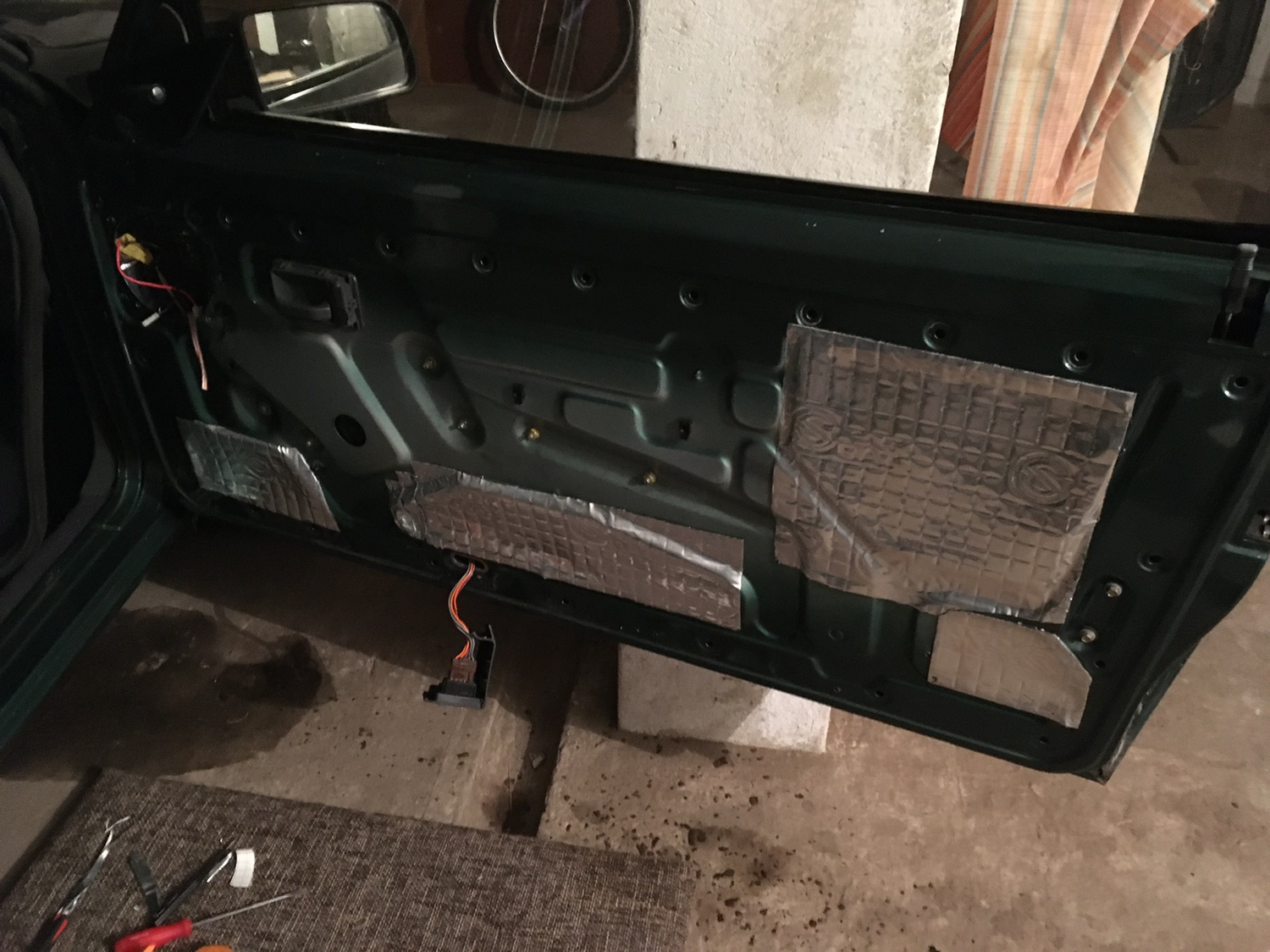 Oraz zająłem się poprowadzeniem nowych kabli do głośników i wygłuszeniem drzwi: