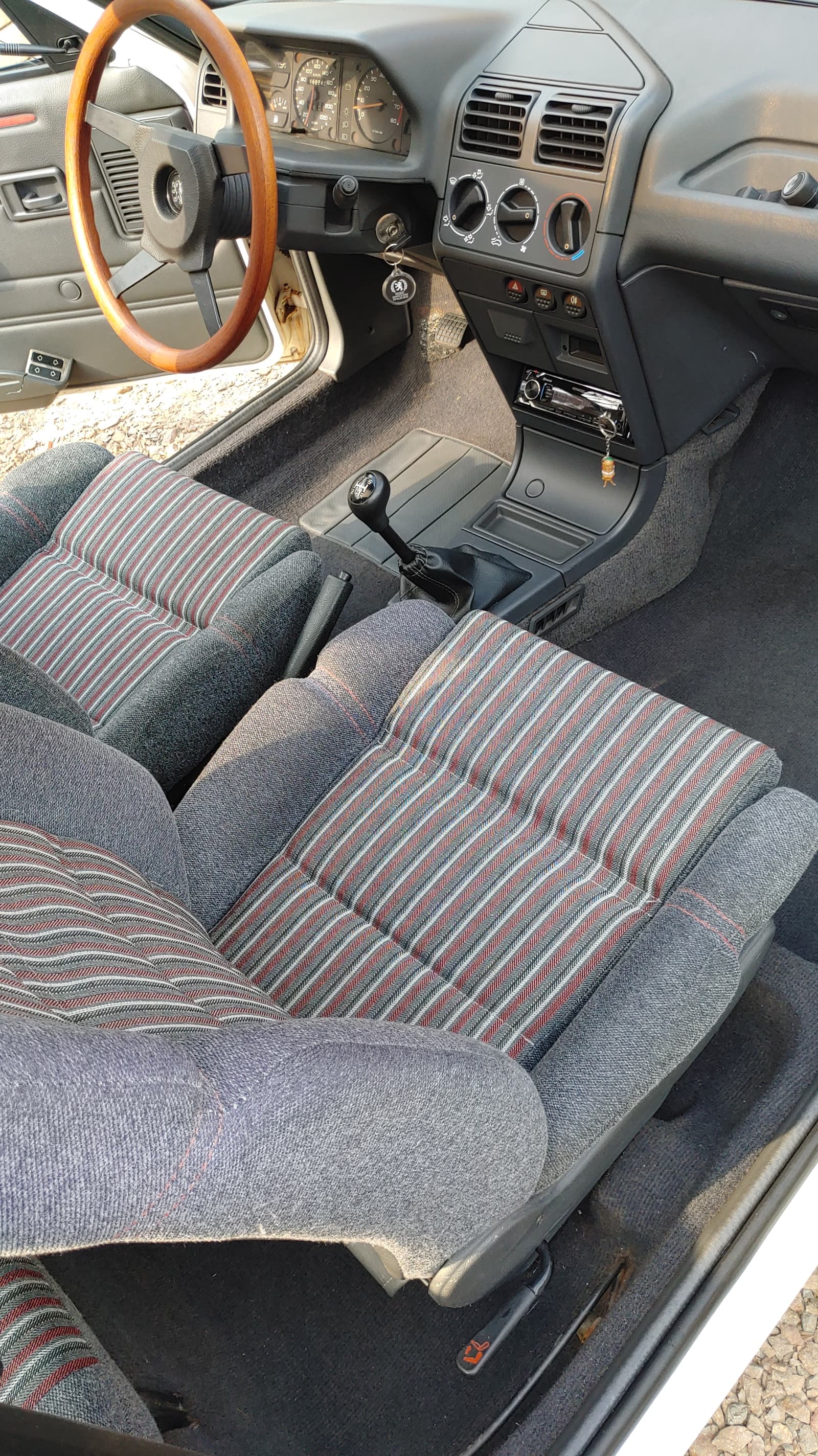 Co tam jeszcze... Założyłem na próbę ster od łajby. Drewnianą kierownicę, która też była kiedyś w katalogu dodatków 205. Co ciekawe, wymontował ją w Grecji z identycznego XS-a mój kolega.