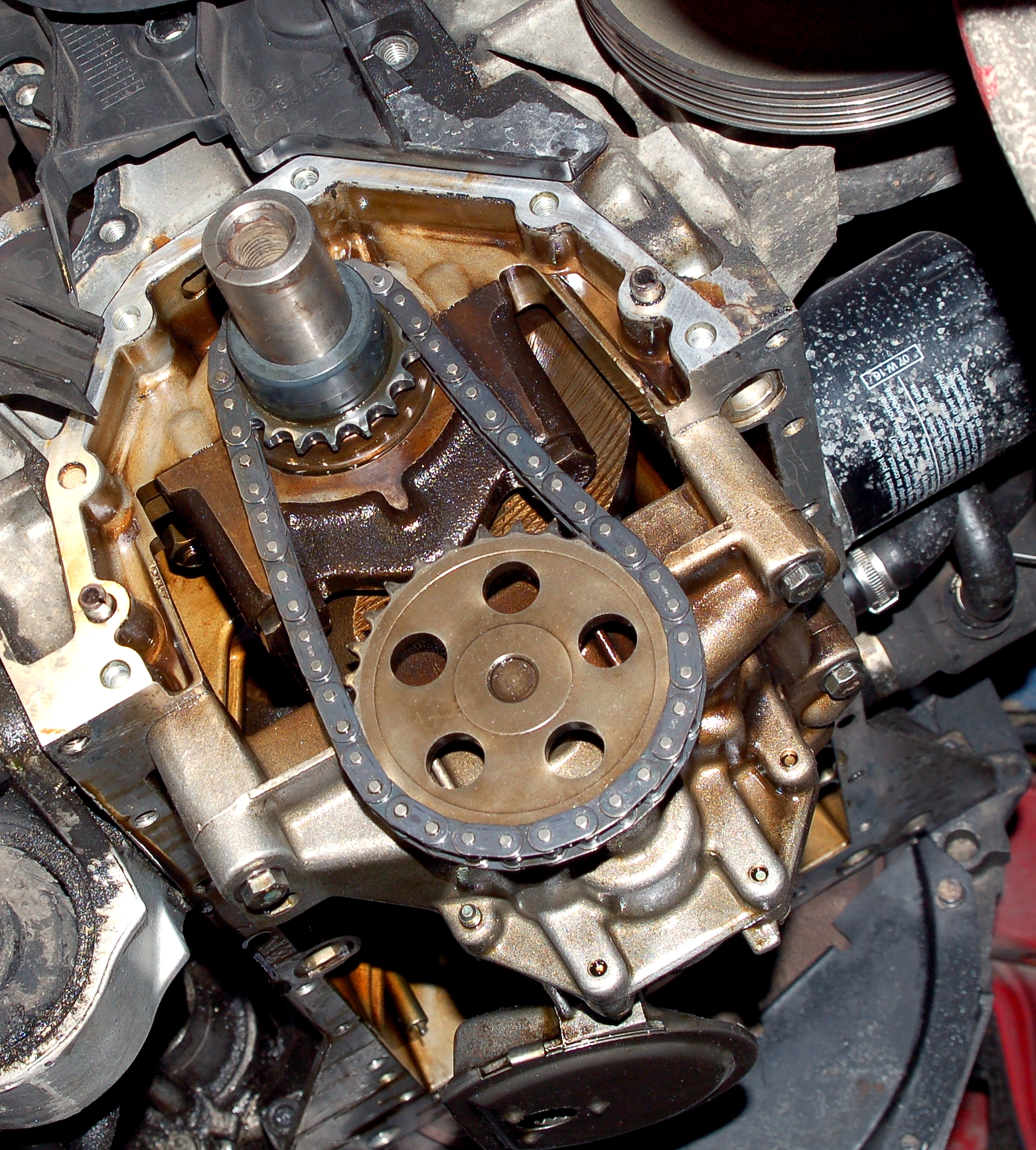 Idąc dalej i za ciosem...po zdjęciu miski warto było też wymienić łańcuszek pompy oleju, padło na oryginalny - jak na poniższym zdjęciu..