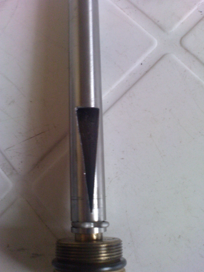 Potrzebowałem sposobu jak ograniczyć mu paliwo na wolnych obrotach, żeby się nie zalewał, ale jednocześnie otworzyć mu "górę" gdy przez gaźnik przechodzi prawie 2 razy więcej powietrza. Dlatego rozszlifowałem gwizdek Blosa, tak by w jego górnym położeniu przy pełnym otwarciu przepustnicy przechodziło możliwie najwięcej paliwa.