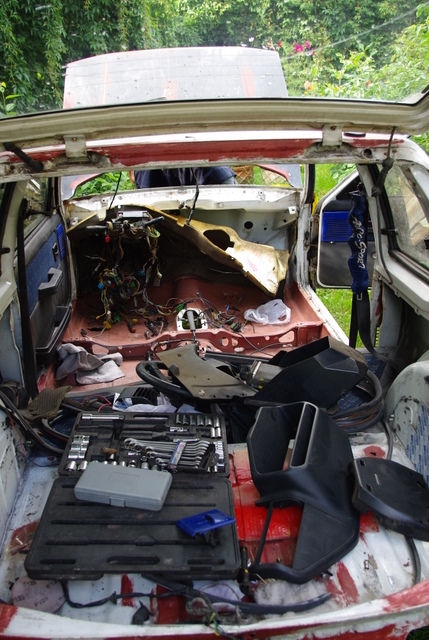 Po kolei auto traciło części z wewnątrz ,które lądowały w skrzynkach w garażu, aż ułożone jedne na drugie dotykały sufitu.