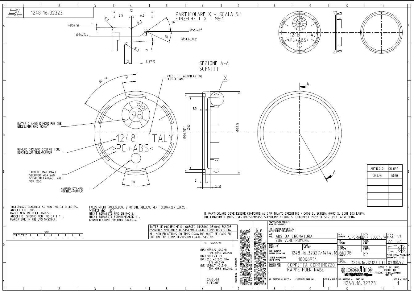 Wkleję jeszcze rysunek techniczny dekielka który Para dostał z centrali Speedline. To rarytas, więc dobrze mieć go na forumowym serwerze. Może komuś się kiedyś przyda.