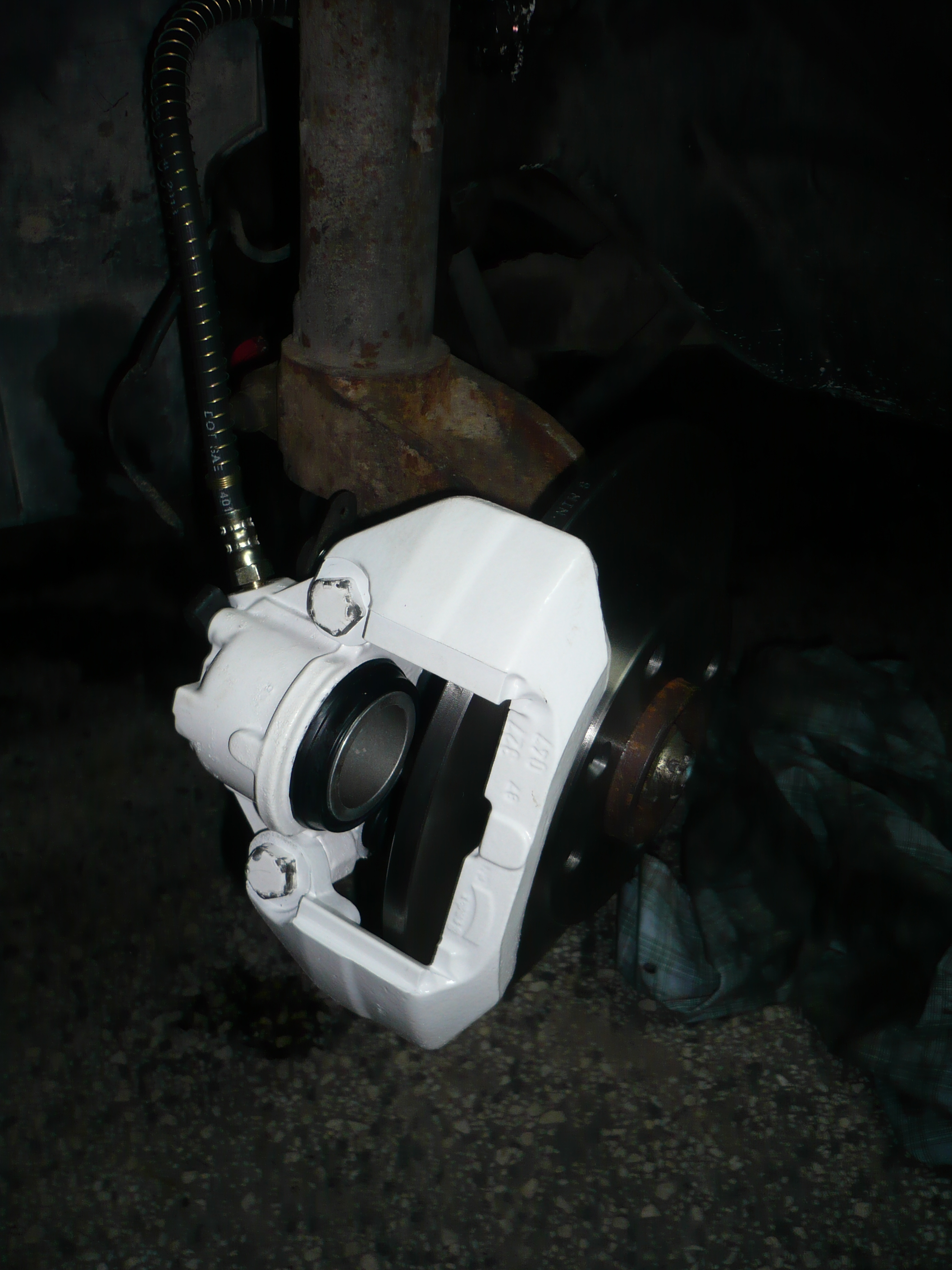 Kolejny rozdział mojego monologu, tym razem ze zdjęciami. Dziś zabrałem się za montaż zacisków. Zregenerowane i pomalowane do tego nowe tarcze i klocki, zakupione z pomocą Manwe. 8) Wcześniej jeszcze weszły nowe wahacze. Zabrałem się też za halogeny ale udało mi się tylko odnowić ramki bo szkła zostały osadzone na silikonie a przydałoby się odnowić odbłyśniki (tu pytanie: z czego są one wykonane?). Może ktoś zna dobry sposób na dezintegracje silikonu?
