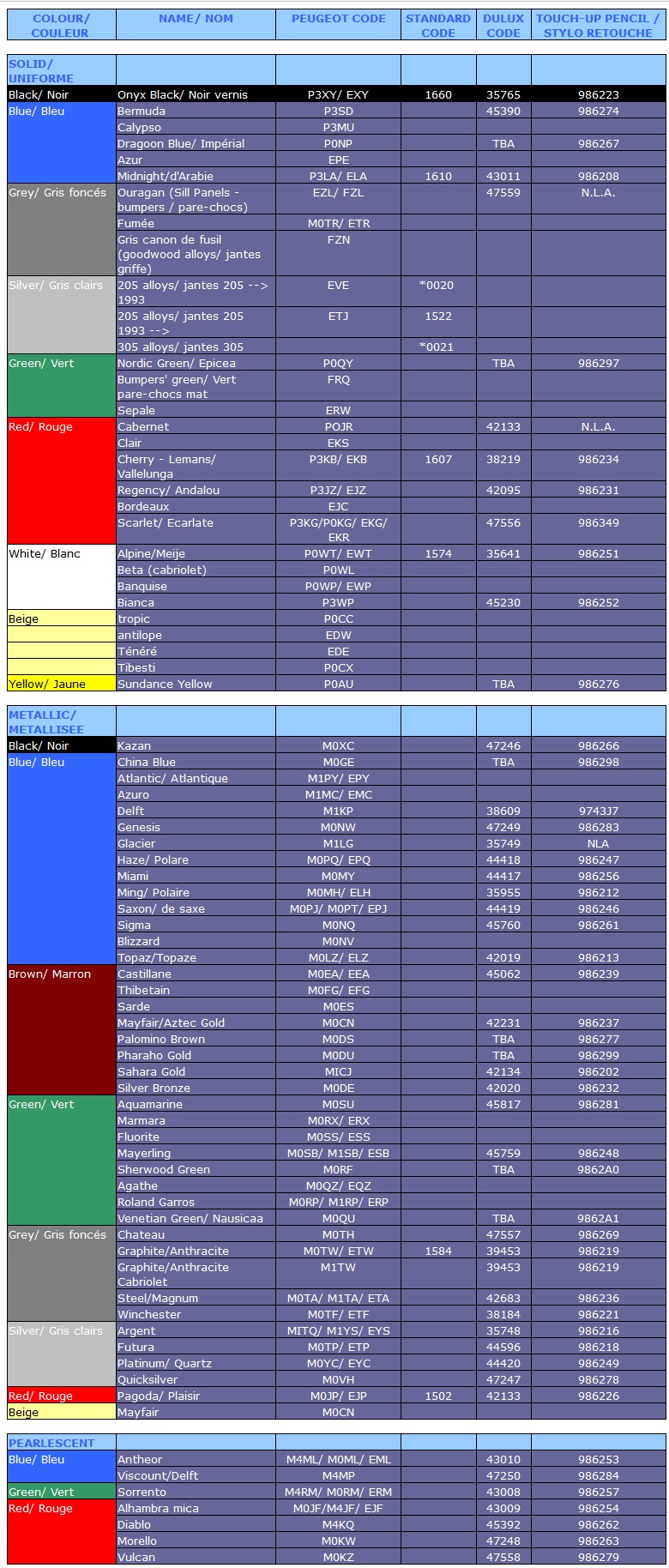 P.S. znalazłem gdzieś w czeluściach internetów kody lakierów Peugeot. Może komuś się coś przyda