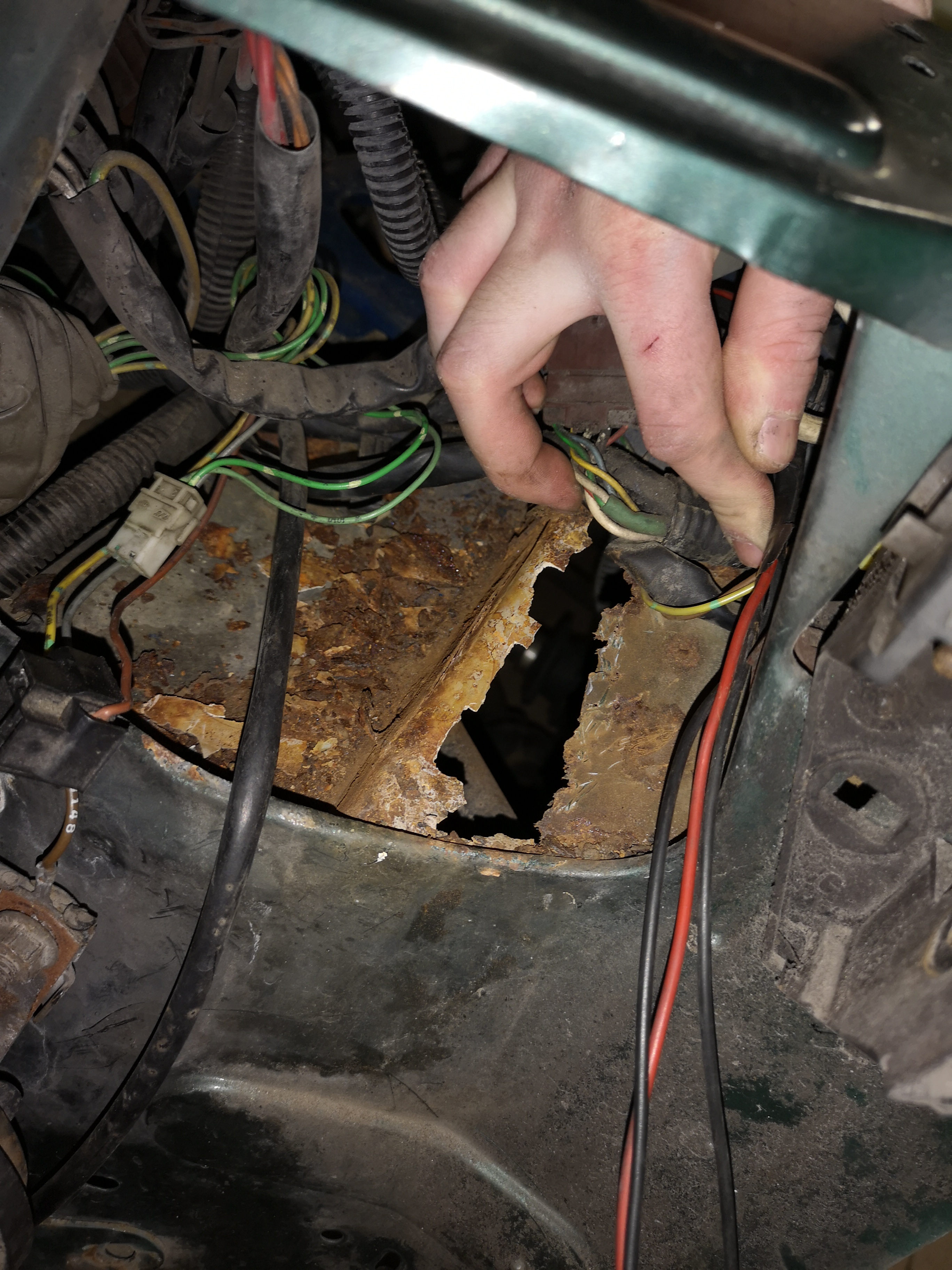 Niestety pod zbiorniczkiem płynu do spryskiwaczy to, co wstępnie oceniłem, jako nalot, okazało się być dziurą.