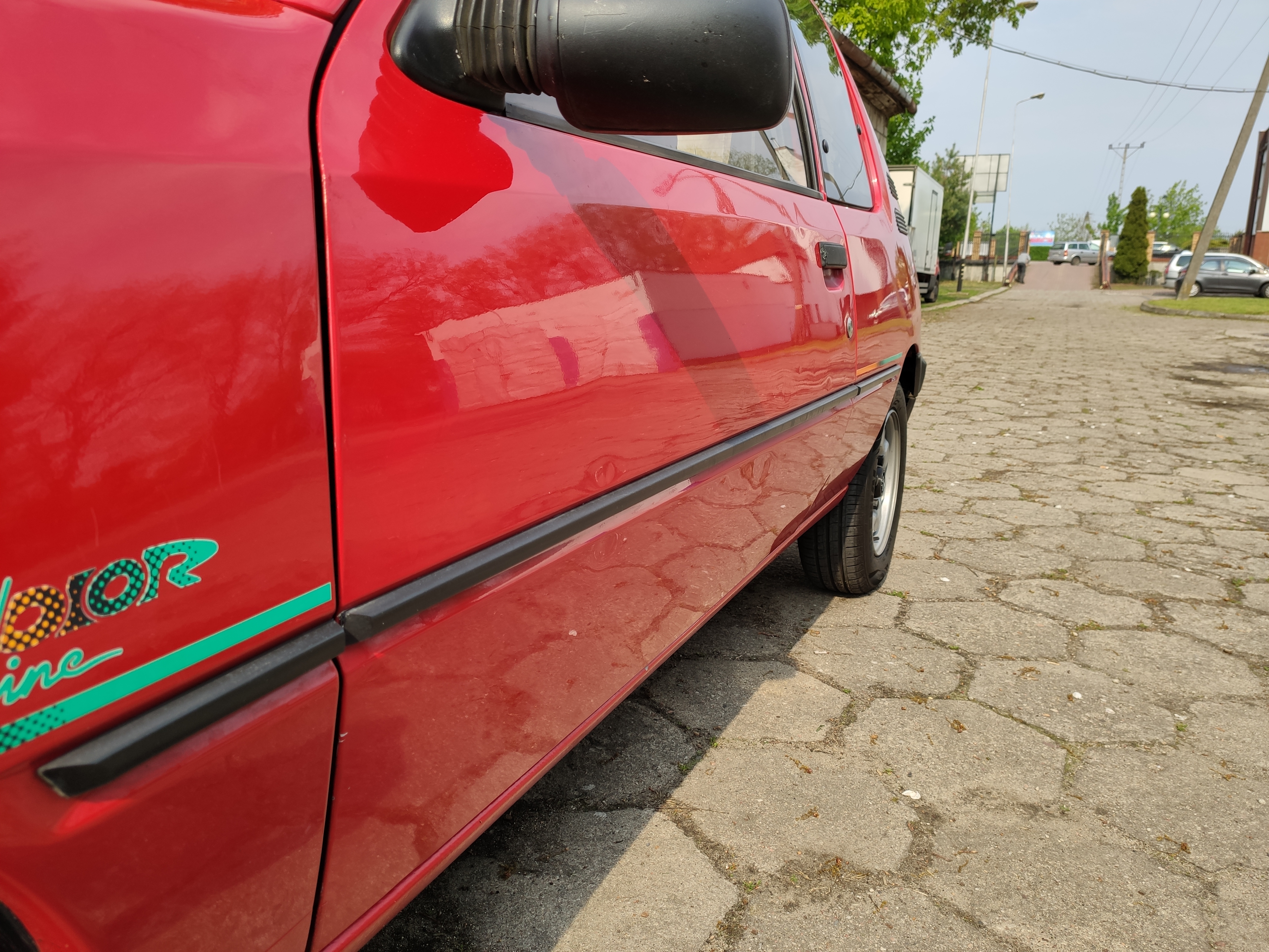 Puki co auto stoi w garażu, a ja poszukuję części. Niestety czeka mnie karkołomne zadanie. Znaleźć drzwi P3KB z naklejką Color Line lub drzwi w kolorze, a naklejki dorobić.