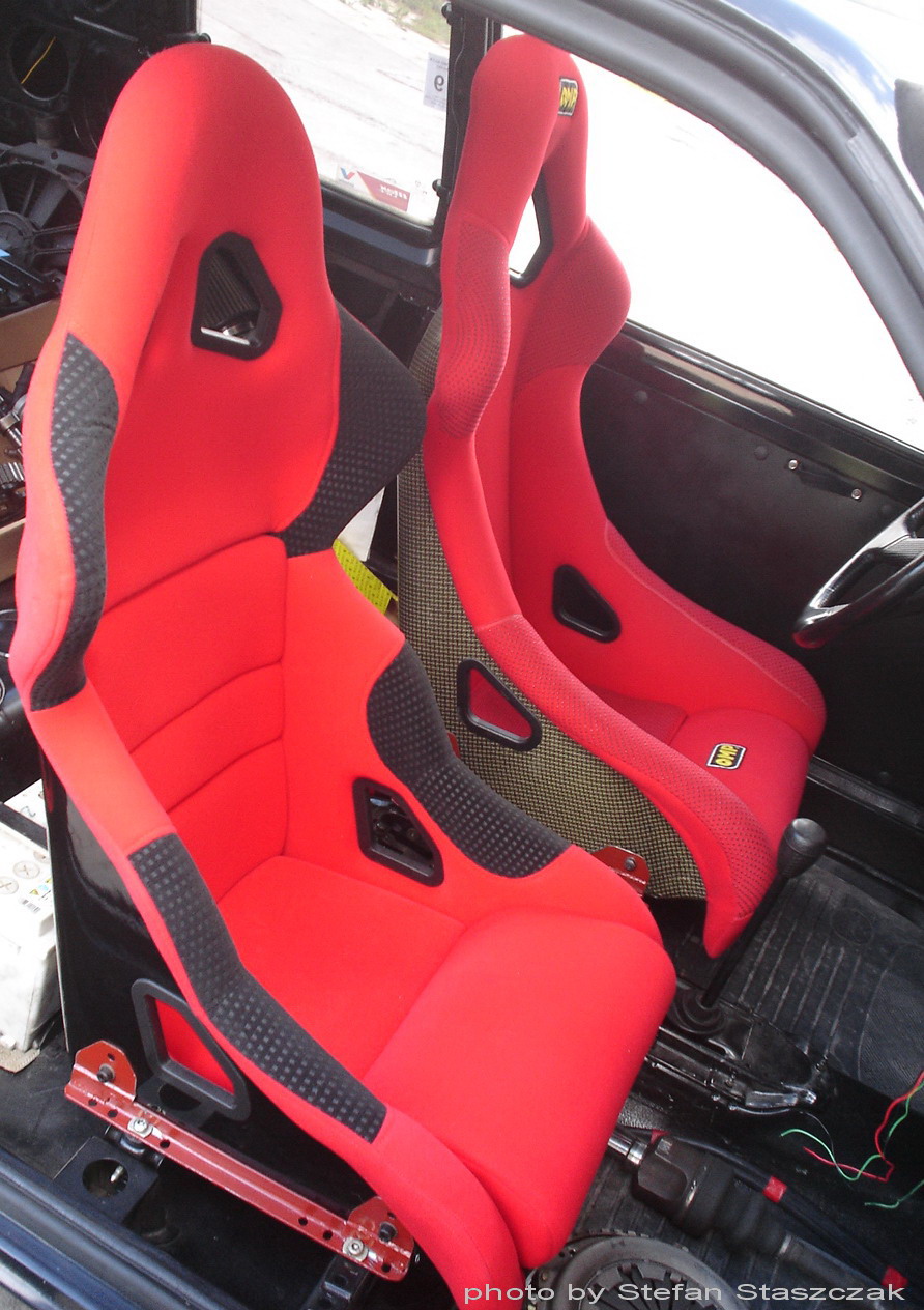 Podczas oczekiwania na nowe i obrabiane czesci, zamontowany zostal wreszcie drugi fotel kubelkowy (SPEED III), tylna belka zostala wyremontowana a takze pozbylem sie jeszcze kilku niepotrzebnych rzeczy (masa). Dodatkowo zainstalowalismy aluminiowa podporke pod lewa noge, dodatkowy wskaznik cisnienia oleju oraz szpilki w tylnych piastach.