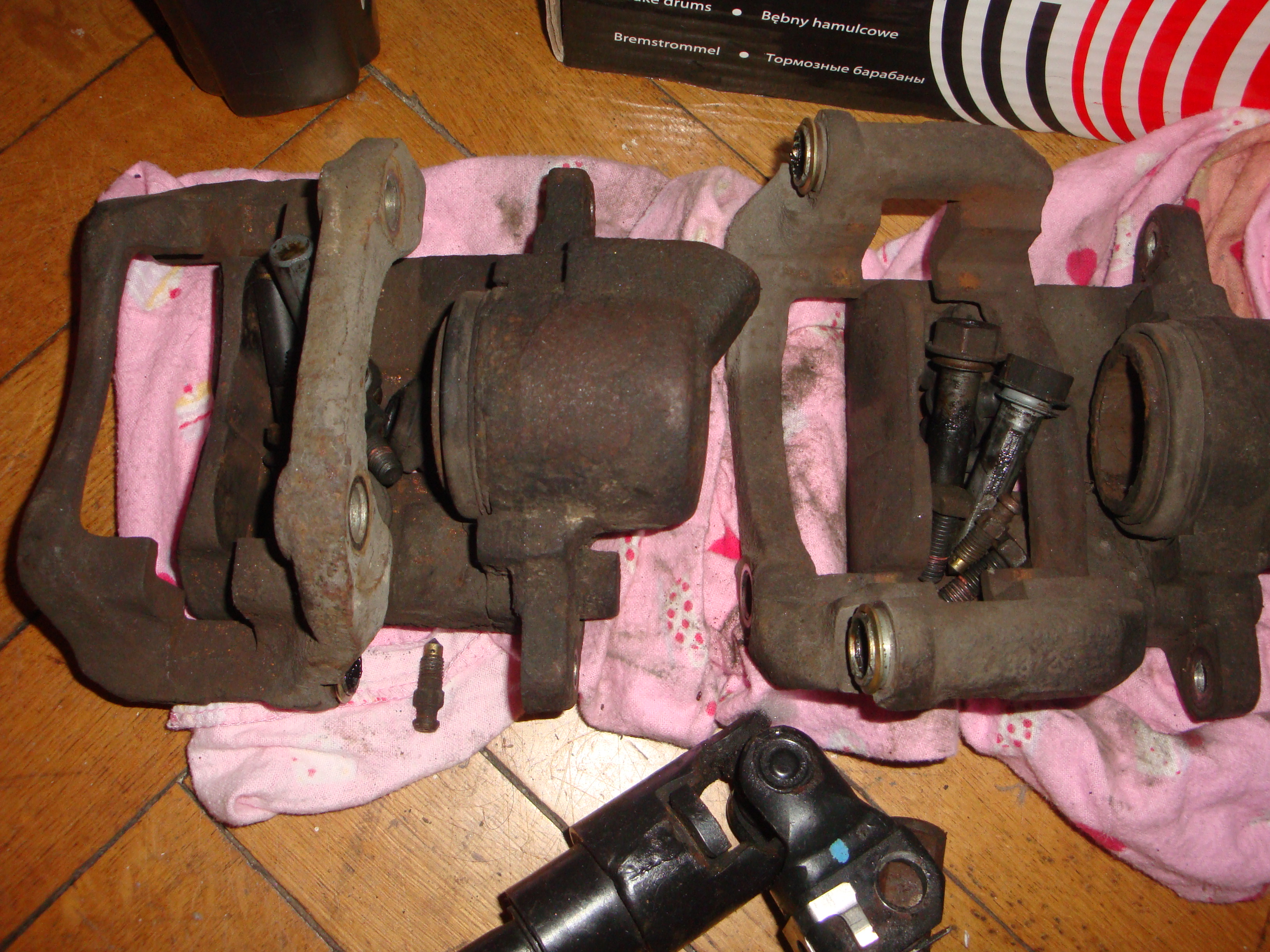 Zaciski rozebrałem i czekają aż je wyczyszczę i pomaluję. Od razu wymienię uszczelniacze i tłoczyska na nowe.