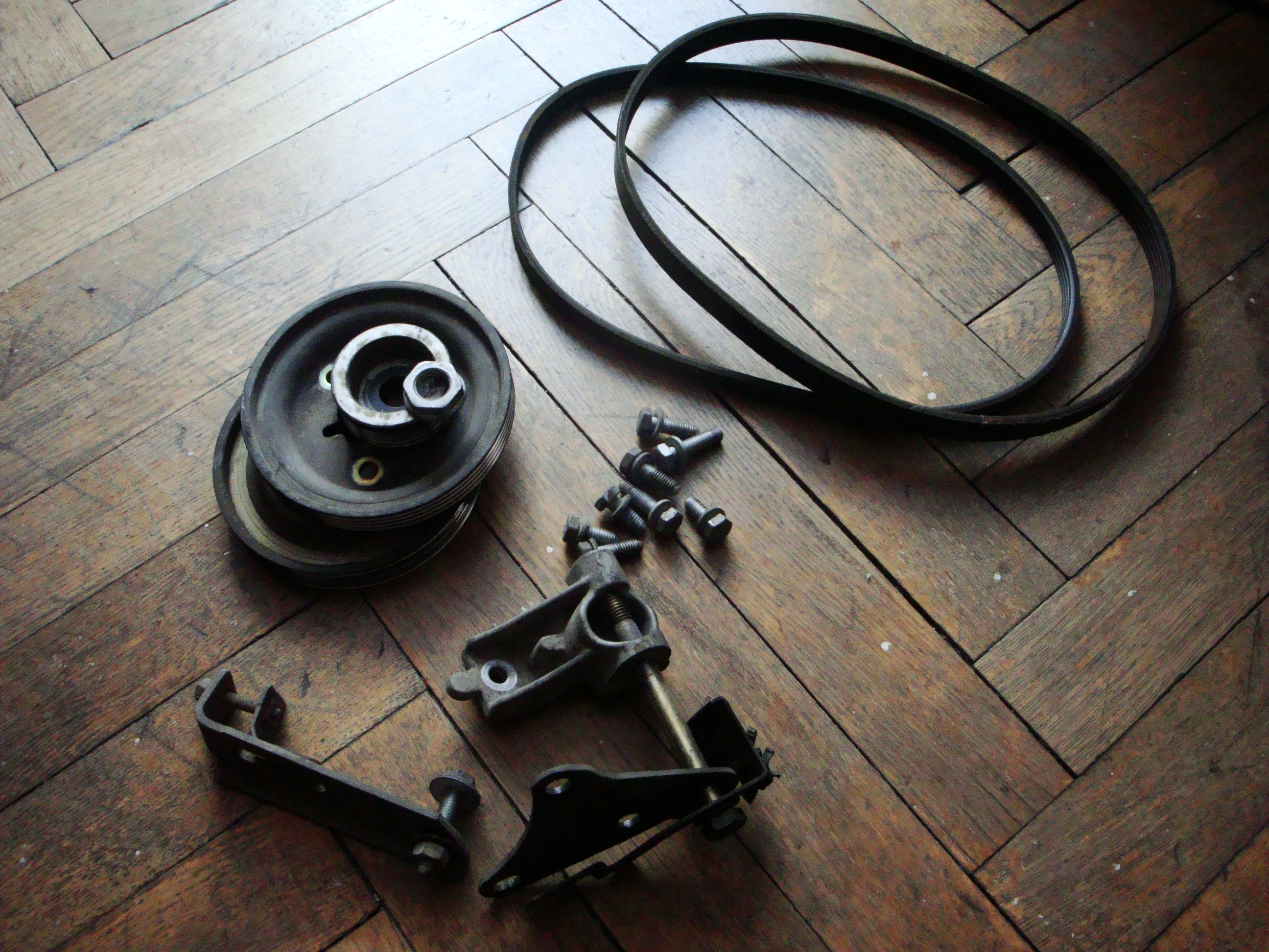 Przyjechały kolejne części. Tym razem do zamocowania alternatora za silnikiem, tak aby zrobić z przodu miejsce na pompę wspomagania. Jest prawie wszystko, poza wspornikiem napinacza, ale ten już jedzie do mnie i w poniedziałek powinien być na miejscu.