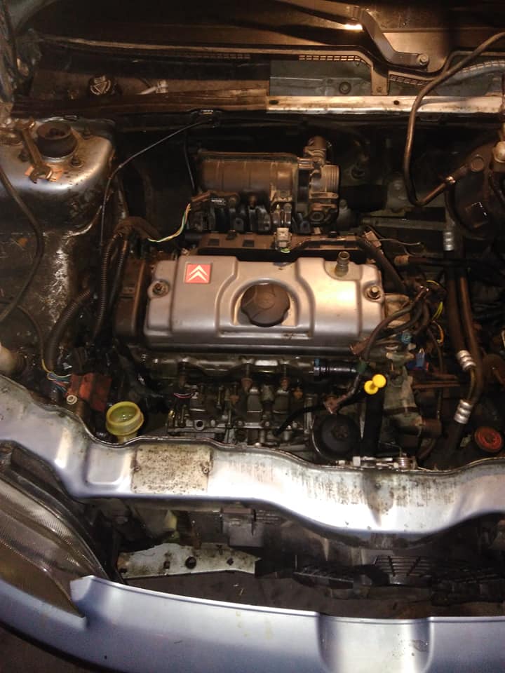 Czas leci 106-ka służy dzielnie jako daily. Niestety nie jest nowa i czasem protestuje. Ok. 2 tygodni temu z pod maski zaczęły dochodzić dziwne piski i szumy. Organoleptycznie ustaliłem, że pochodzą ze skrzyni biegów. Miałem jednak nadzieje, że do wiosny dojeżdżę. Niestety nie był to koniec, a dopiero początek. Ponieważ zdecydowałem się nabyć w drodze zakupu pewną nieruchomość, związaną z poprawą warunków bytowych auta udałem się do rzeczoznawcy po jego wycenę. W drodze stało się coś co spowodowało, jak mówi mój syn, że mieliśmy auto rajdowe. Czyli urwał się wydech tuż za katalizatorem czyli jakieś 40 cm od kolektora wydechowego. Kiedy parkowałem pod blokiem, dobiegły mnie kolejne dzwięki przebijające się przez warkot czyli "rozpaczliwe kwiczenie". Nigdzie w okolicy nie ma chlewni przez co podejrzenie padło na skrzynię biegów, a konkretnie łożysko sprzęgła. Ponieważ od roku, nie wymieniam oleju, ale go systematycznie dolewam, a w garażu czaił się zakupiony silnik z C3, zapadła decyzja o "zimowym swapie". Obecnie wygląda to tak. Uszczelnienia zmienione, rozrząd i sprzęgło nowe, wszystko siedzi w aucie.