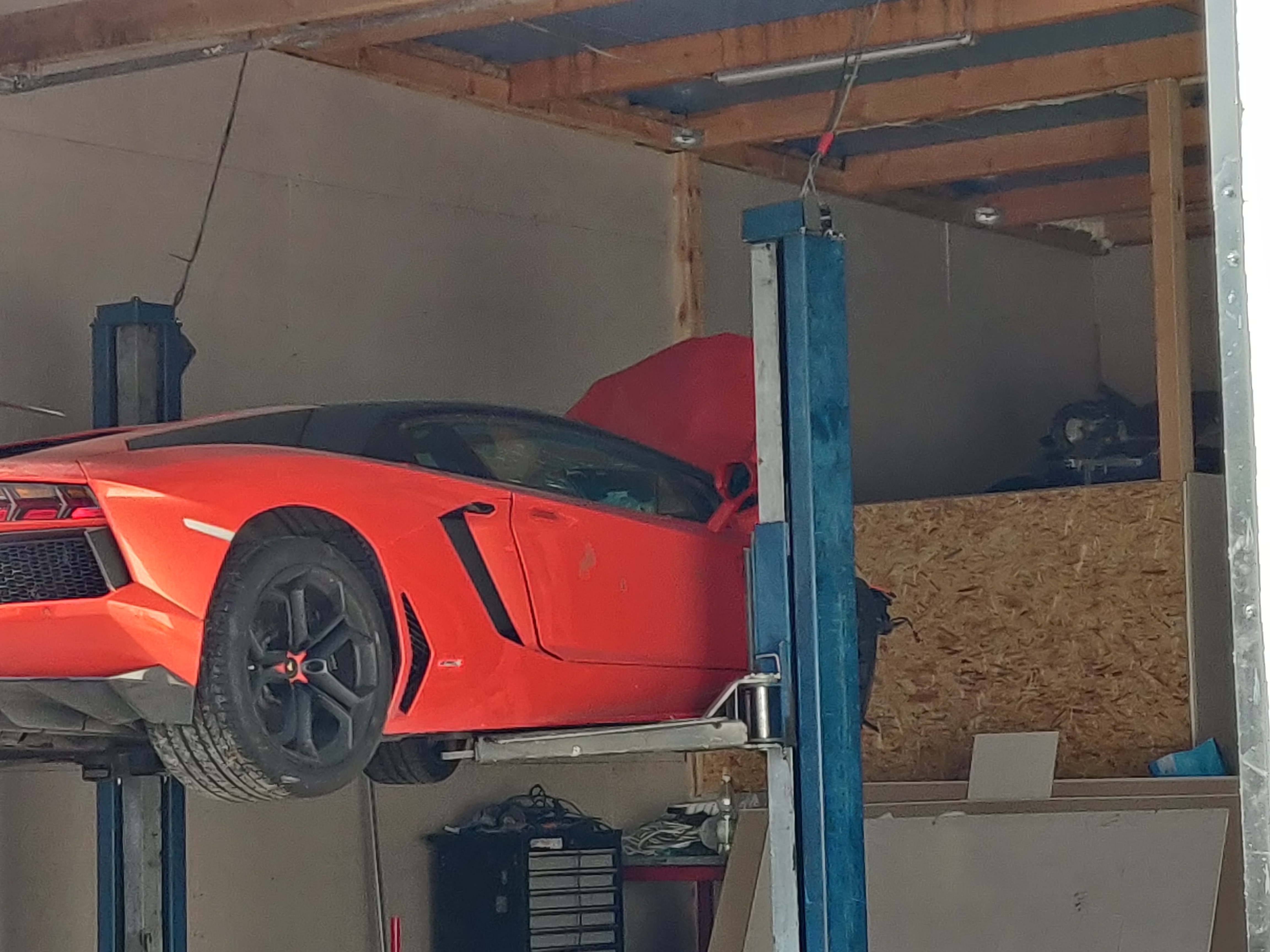 Po długim czasie oczekiwania na termin, udało się w końcu odstawić 205 do warsztatu lakierniczo-blacharskiego. Samochód doczekał się rozpoczęcia prac w zacnym towarzystwie m.in. Lamborghini.