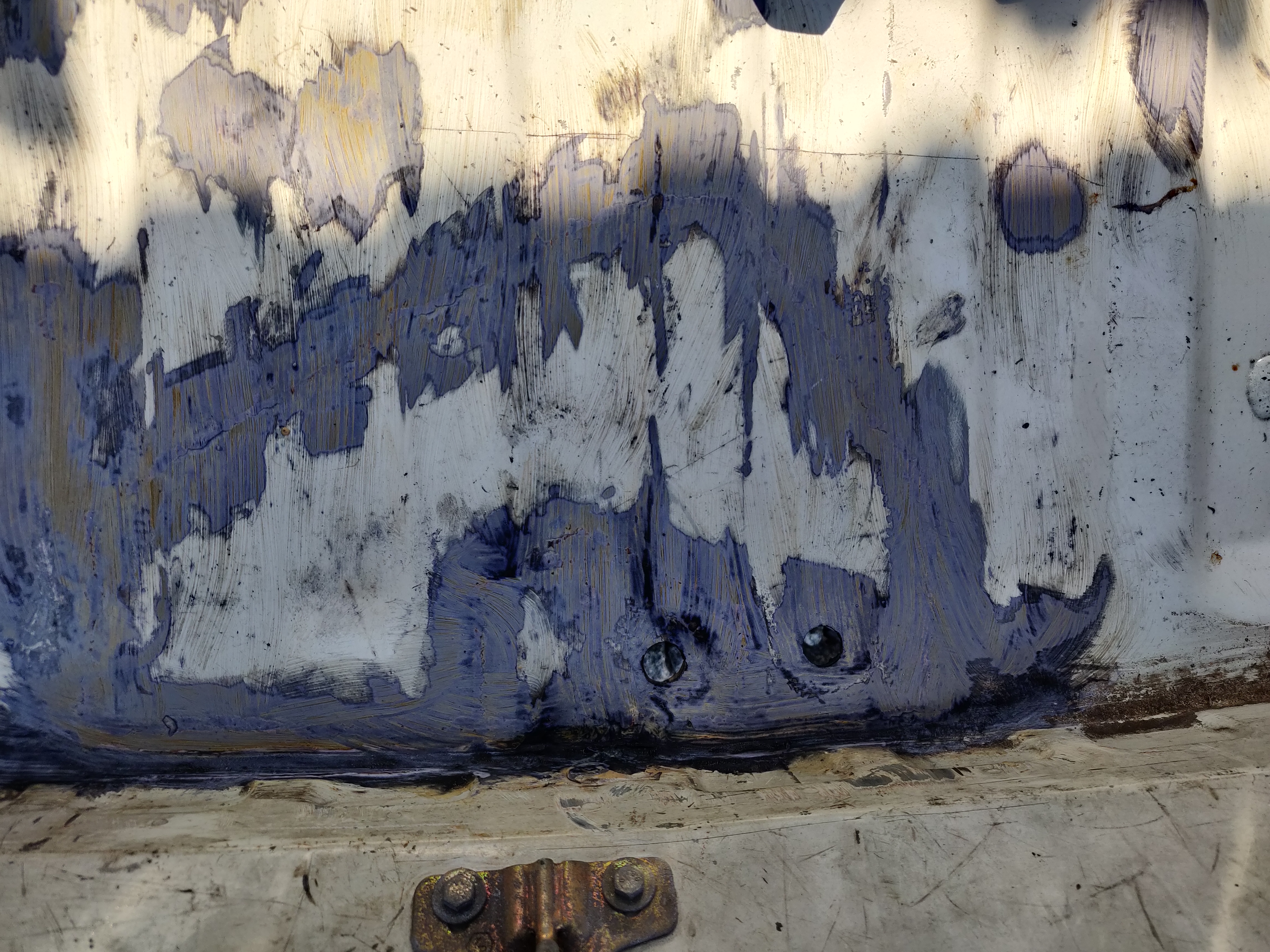Po rozebraniu auta nie było tragedii. Dziura w panelu podłogi koło zamka klapy i trochę powierzchownej rdzy na podłodze pod dywanem. Z zewnątrz bez rdzy. Za to sporo drobnych wgniotek , szczególnie na drzwiach kierowcy. Blacharz uznał, że aby je doprowadzić do porządku to potrzeba sporo pracy i najlepiej znaleźć jakieś w lepszym stanie. I tutaj przydał się kupiony kilka lat temu zbiór części blacharskich. Trochę trzeba było pogrzebać i znalazły się nowe oryginalne lewe drzwi. A przy okazji też trochę innych ciekawych części blacharskich m.in drzwi i błotnik do 405 mi16. Dawcą podłogi bagażnika został biały 3d, który niedługo potem wyruszył w swoją ostatnią podróż do huty. Podłoga bagażnika i w kabinie naprawione, więc można działać dalej...