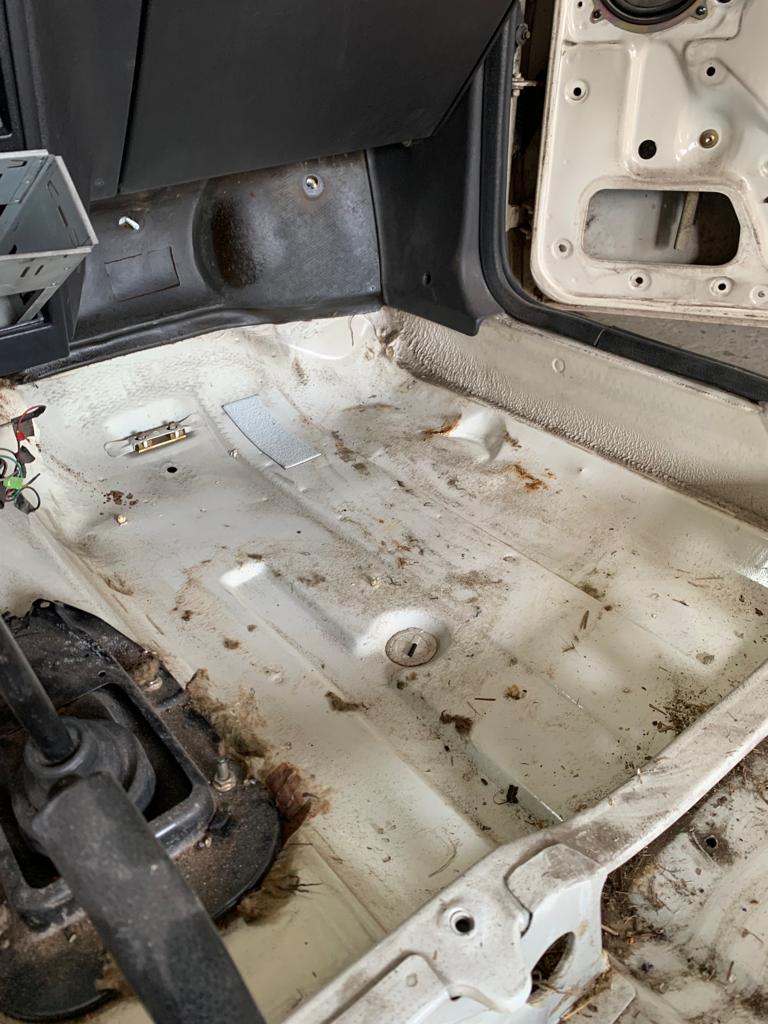 Bagażnik rzeczywiście straszył, ale reszta nie jest zła. U mnie też mnóstwo wgniotek, którymi moooże kiedyś się zajmę. Czym planujesz wyłożyć podłogę jak będziesz kładł wykładzinę na nowo?