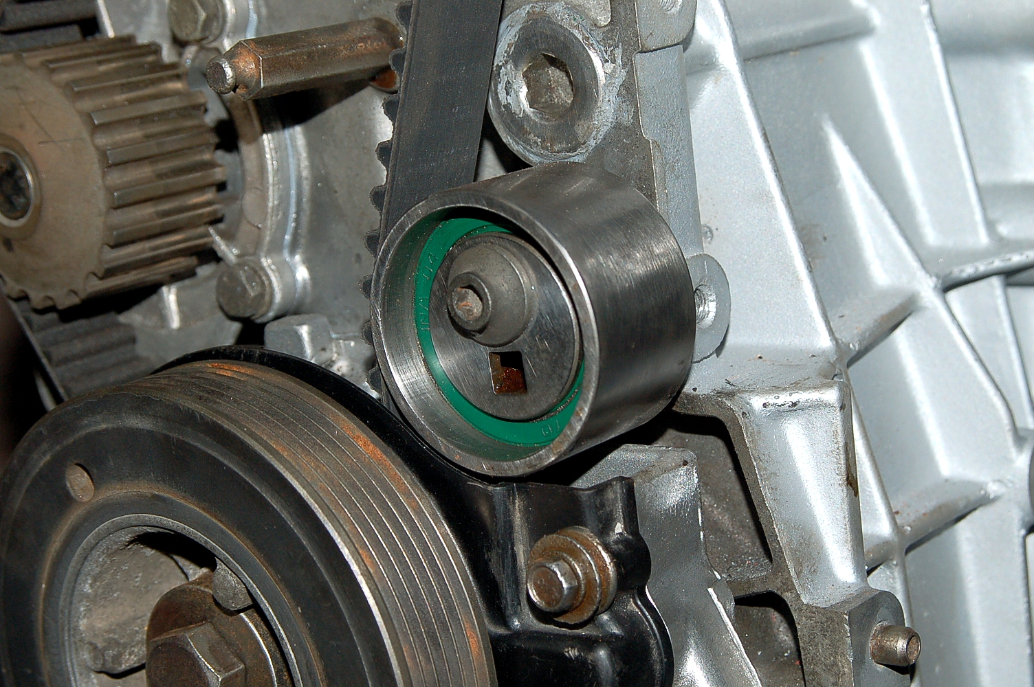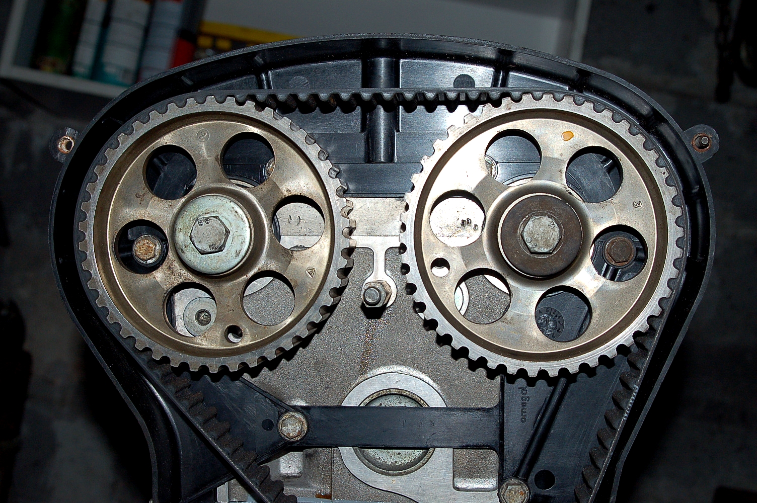 Nastąpił mały update prac, przykryte zostały pasek rozrządu oraz wałki, zamontowano alternator, chłodniczkę oleju, czujniki, króciec wodny, dolne mocowanie silnika ( nowa tuleja Sasic ) itp itd...