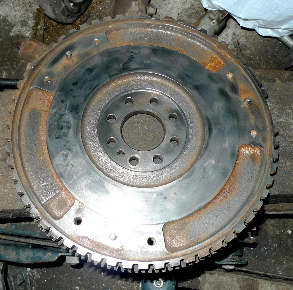 Wstępnie odczyściłem koło zamachowe i przygotowałem wsio do montażu sprzęgła i skrzyni.