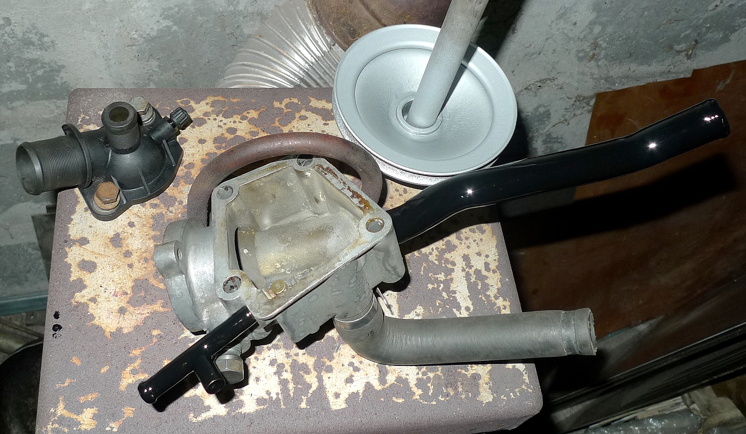 Odświeżyłem mocowanie linki sprzęgła, pompę wspomagania , zespół termostatu i koło pasowe pompy wspomagania .