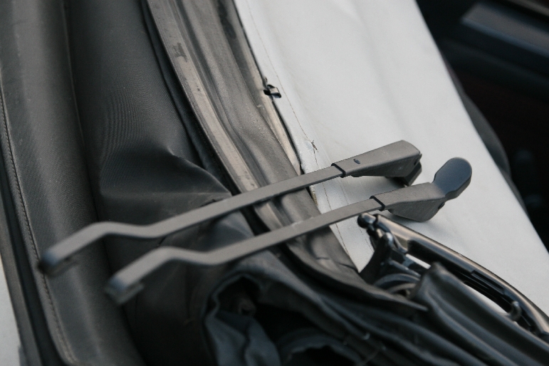 Polakierowane już dawno temu lakierem strukturalnym wycieraczki w końcu zamontowane, podobnie psiki od Xary, a jutro odbieram nowy silniczek spryskiwaczy.