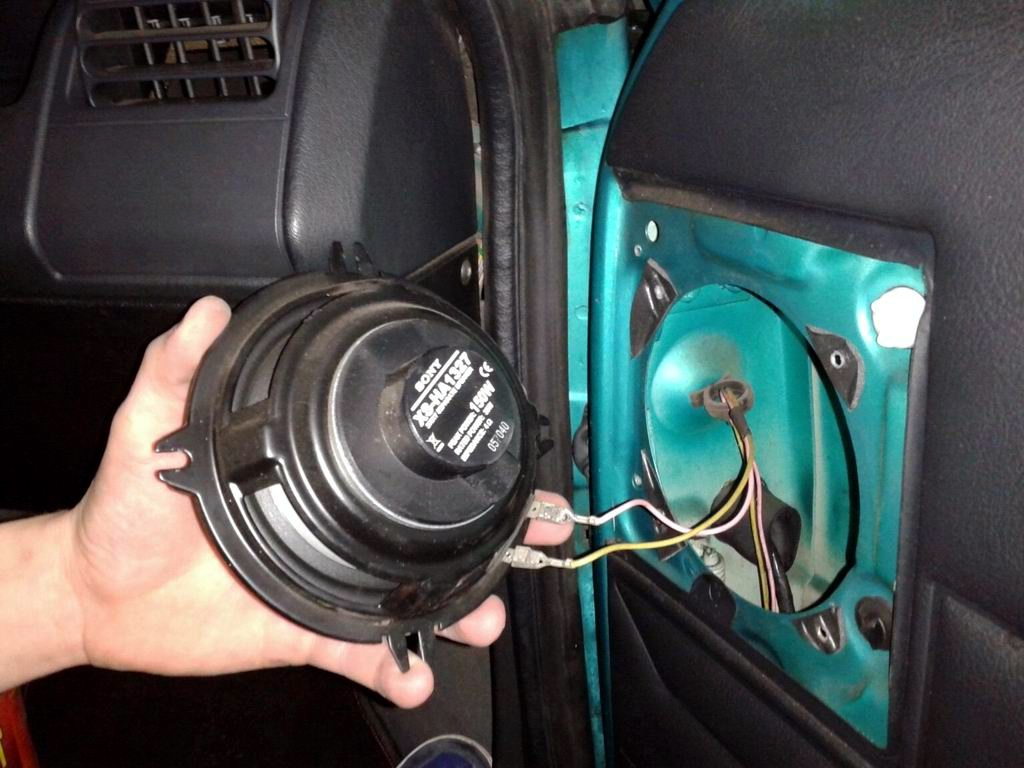 Nie działał prawy głośnik, a to za sprawą odłączonego kabelka. Po odkręceniu kratki, okazało się, że odziedziczyłem jakieś Sony Xplody, które całkiem nieźle grają. Na pewno lepiej niż fabryczne, albo chińczyki z mojego dieselka