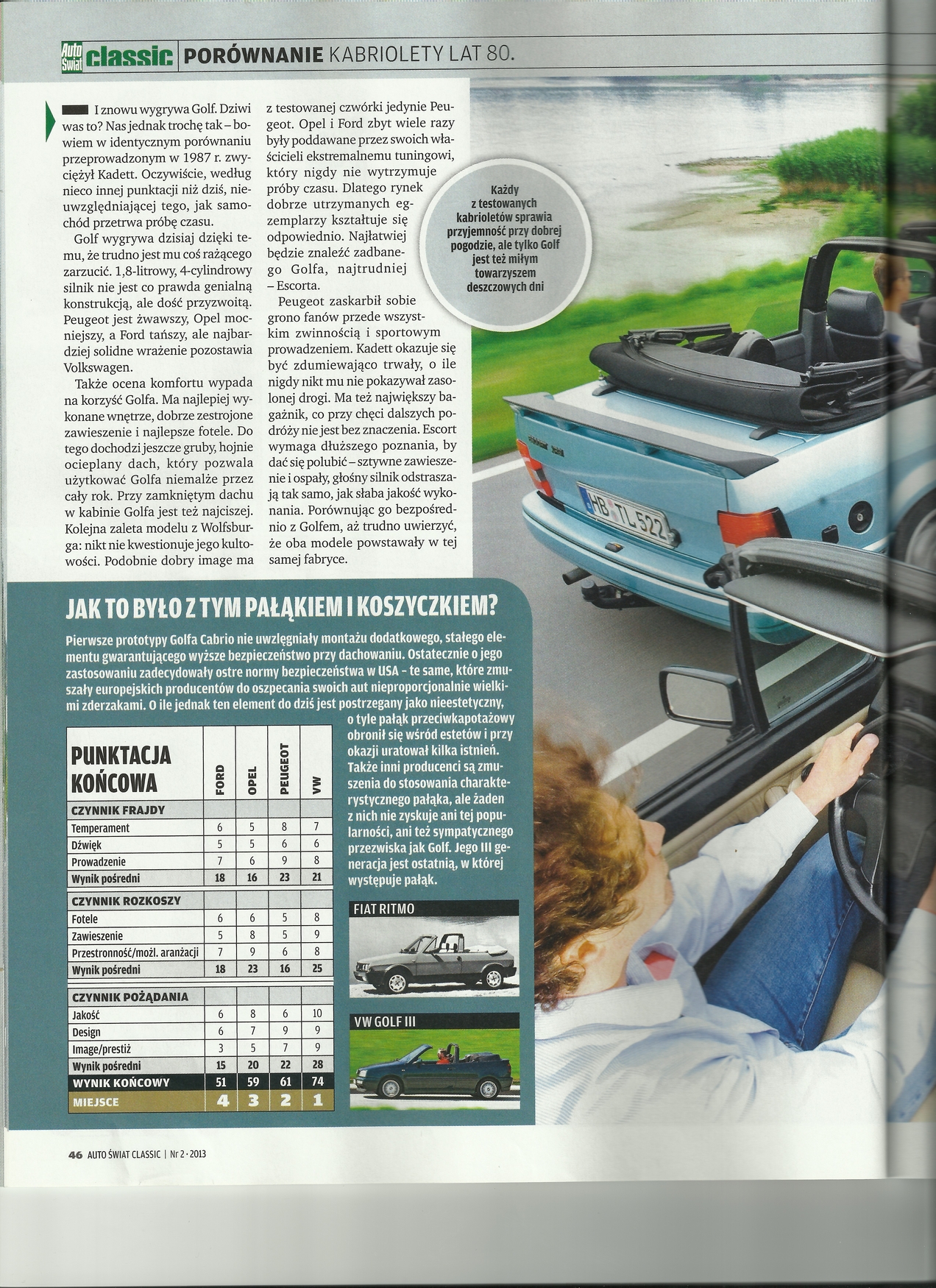 Całkiem przypadkiem natrafiłem na gazetę Auto Świat Classic 2/2013 i artykuł "koszykowe Cabrio". Ku mojemu zaskoczeniu w czwórce pretendentów do wygranej stanął "nietypowy" 205 CTI.