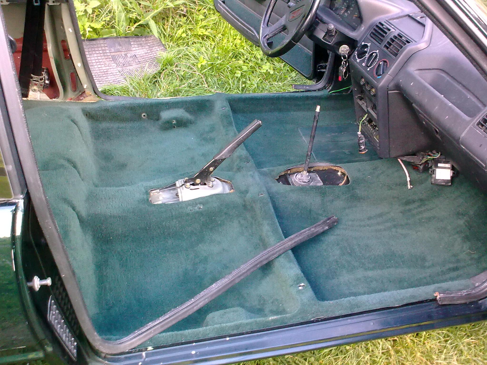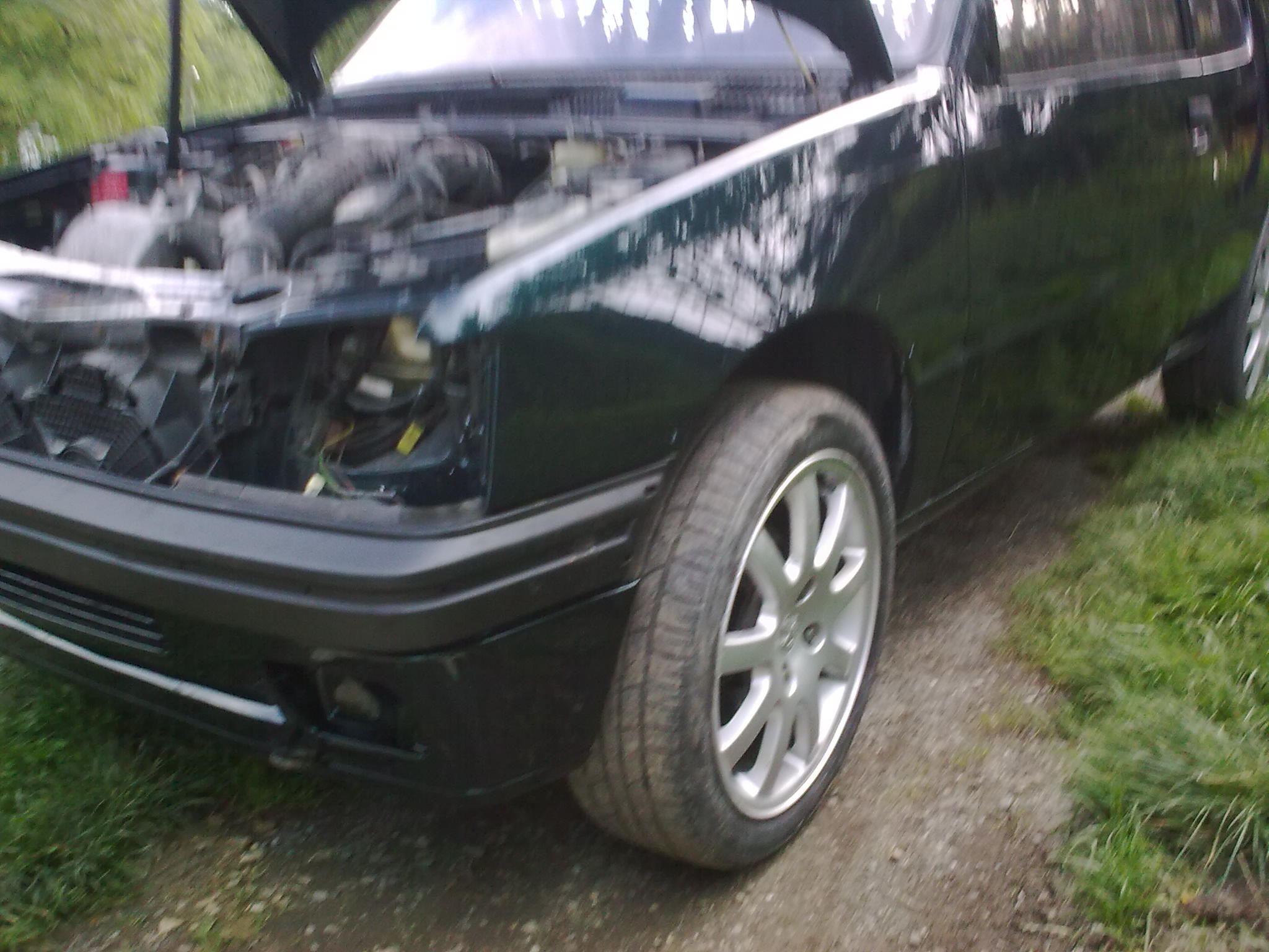 Autko nie dawno przywiezione z Francji po małym przygodach (przerysowany bok), przebieg oryginalny 165 tyś nie kręcony. Ma mi służyć na co dzień do dojazdu do pracy, czyli dziennie będzie pokonywać koło 15km. Buda bez rdzy, rocznik listopad 91r, bez szyberdachu a szkoda. Silnik 1.6 115km bez kata, abs o dziwo sprawny, wnętrze czarne, fotele były materiałowe ale autkiem jeździł ktoś o znacznej masie co doprowadziło fotele przednie do ruiny, więc jest już pół skóra z zieloną kratą. Pierwszy lakier, ale te lakiery miały mały mankament - łuszczyły się, więc trzeba było malować trochę więcej niż wspomniany boczek. Oto trochę foto z ostatnich działań: