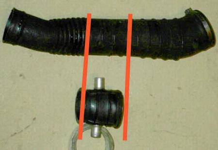 Guma, którą zaznaczyłeś na zdjęciu to samoróbka. Opis jak ją wykonać znajdziesz na stronie http://www.205gtidrivers.com w dziale "articles/engine tuning/DYI Induction Shortener.