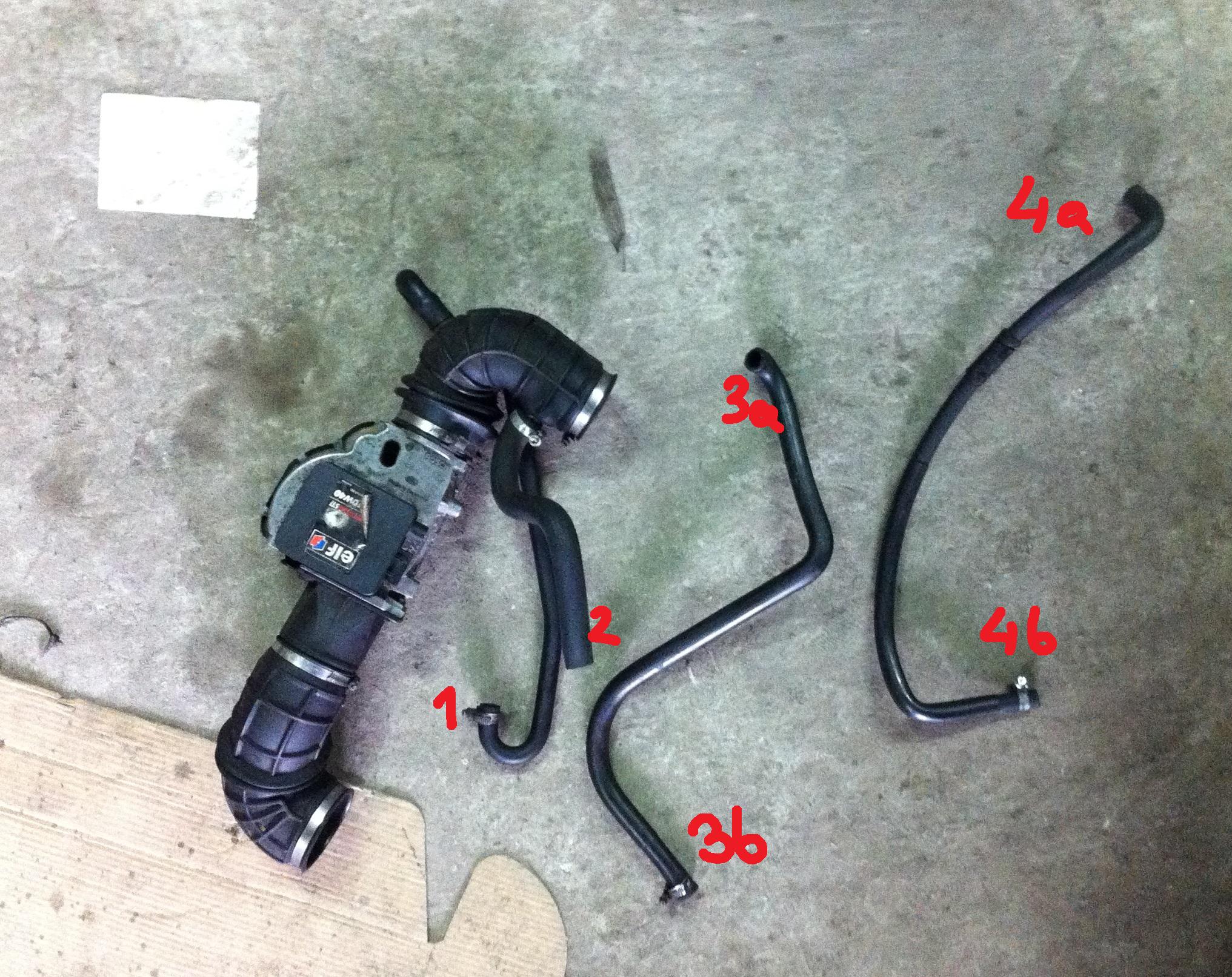 3 - to mi wygląda na odmę z kolektora dolotowego - od spodu więc 3a - od spodu kolektora z przodu, ale 3b nie wiem