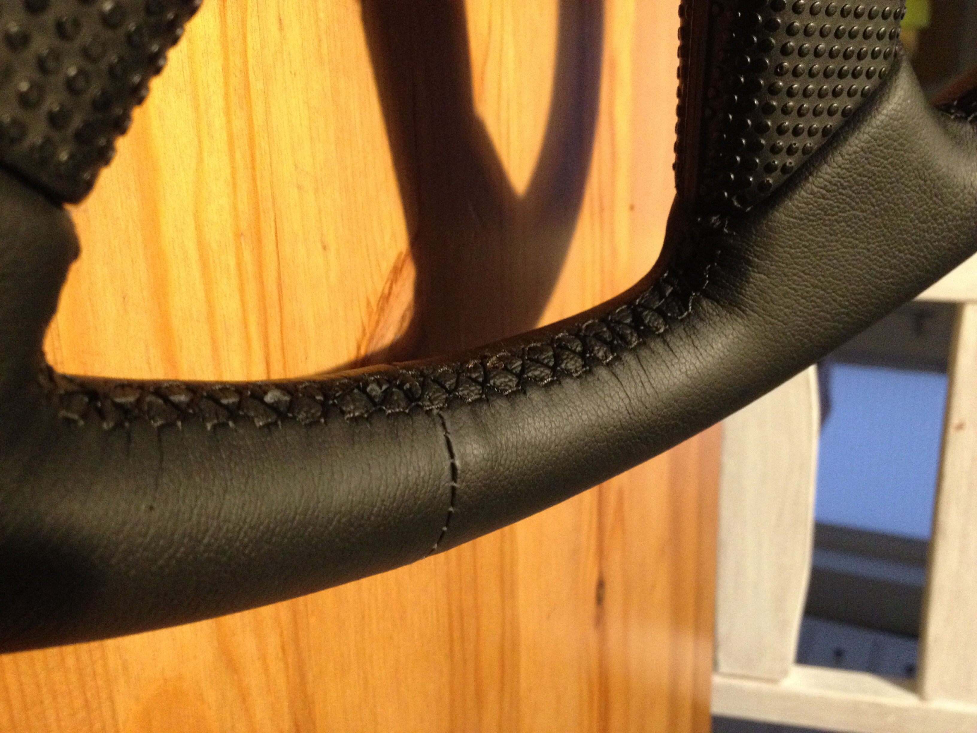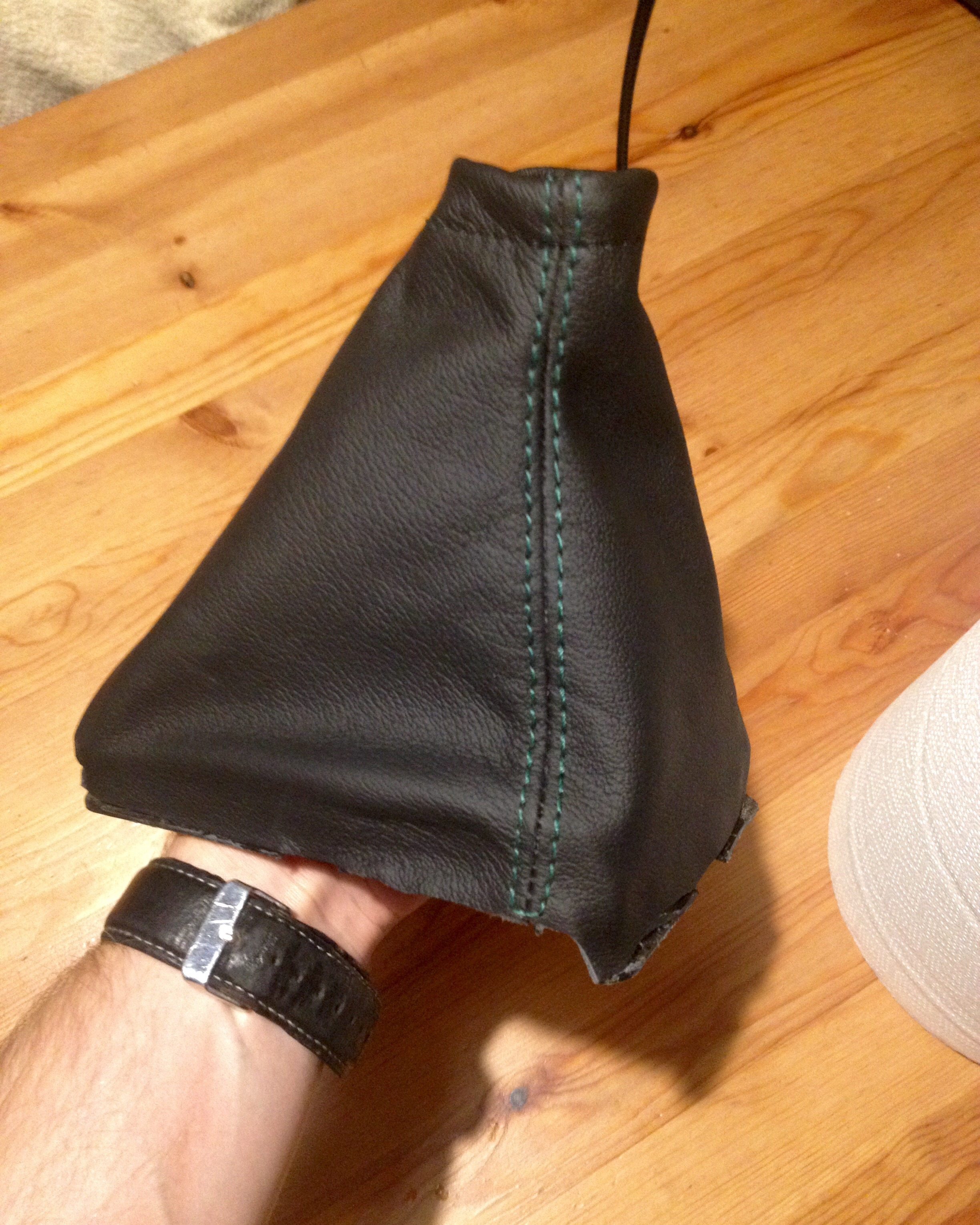 Zielona nić na czarnym mieszku dźwigni zmiany biegów