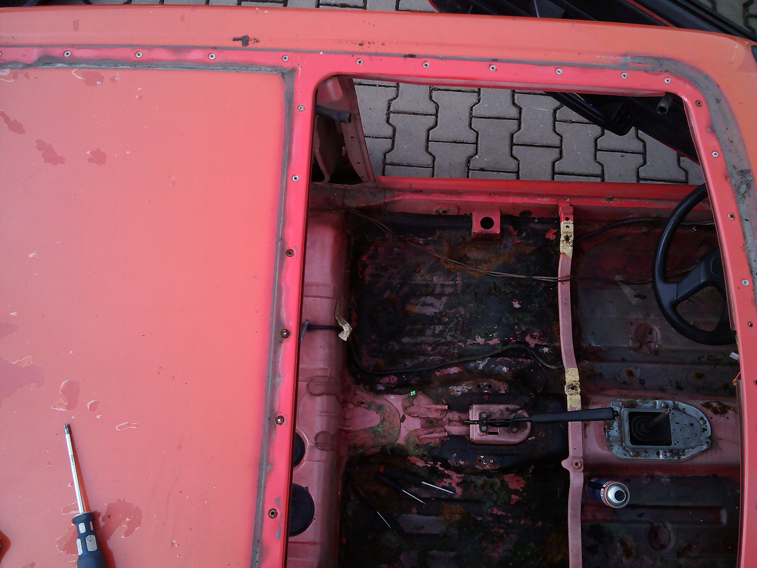 wszyskie wygłuszenia do kosza - mokre, ktoś wcześniej coś tam spawał z mocowaniami foteli, czarna konserwacja i w kilku miejscach niestety DZIURY