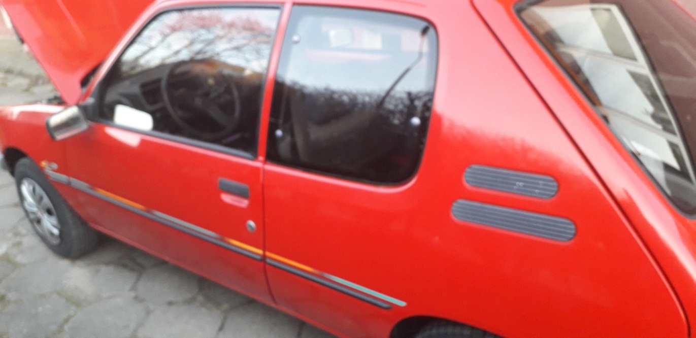 Treść ogłoszenia nie zachęcała. Trzy zdjęcia, tym bardziej zniechęcały. Zadzwoniłem tylko dlatego, że miał naklejki z prawej strony. Oczywiście lewego boku nie było na zdjęciach. Trudno zadzwonię spytam. Okazało się, że auto sprzedaje pani która o mechanice wiedziała tyle samo co ja kosmetykach. Na dodatek odziedziczyła go w spadku. Jednak była na tyle uprzejma, że zrobiła mi dużo zdjęć newralgicznych miejsc dla każdej 205-tki. Wyglądało to na tyle dobrze, że umówiłem się na kolejny dnień celem oględzin.