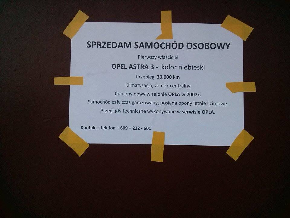 Garaż kupiony, trzeba więc wyprowadzić się z dotychczas wynajmowanego. Sobota słoneczna, więc wraz z Jędrkiem (niektórzy go poznali na ubiegłorocznym zlocie) nosimy skrzynki do samochodu. Zauważam że na przeciwko starszy pan wywiesza kartkę na bramie swego garażu. Podchodzę nieśmiało żeby zerknąć o ile taniej mogłem kupić garaż gdybym poczekał. Ale nie. Sprzedam samochód, Opel Astra, 2007, pierwszy właściciel, Wszystko robione w ASO, przebieg 30000km, 3-drzwiowy (GTC, pffff), klimatyzacja, centralny zamek. Interesująca oferta dla moich rodziców których Scenic I powoli dokonuje żywotu. Zaczynam więc jak złomnik nakazuje: "Dzień dobry, piękny ma pan samochód."... Okazało się że pan jest chory i lekarz zabronił mu już prowadzić (tłumaczyła żona). Że jest pierwszym właścicielem i że wszystko "robił w Oplu". Pytam czy mogę obejrzeć - Oczywiście. Nie było co oglądać. Pan wpisał 30000 bo przebieg przekroczył 29000 (29120) i uznał że tak trzeba. Otworzyłem drzwi i od razu poczułem znajomy zapach. Zapach nowego samochodu. W czasie pierwszego oglądania starszy Pan zapewniał że ma 100 koni, więc myślałem że to chociaż 1.6... Niestety, potem okazało się że 90 to dla pana prawie 100, a silnik to 1.4. Zapytałem ile Państwo sobie życzą, na co dostałem odpowiedź że w Oplu dają 20000. Odpowiedziałem, że napewno prywatny kupiec zapłaci więcej, bo salon też musi zarobić na odsprzedaży, na co pani odpowiedziała, że jeśli ktoś da te 20000 to oni już więcej nie chcą. Dzwonię więc do mamy, czy byliby zainteresowani. Mama nie chce - Mówi że 3d, że szukają czegoś nowszego itd. Ok, nie to nie. Ale za chwilę oddzwania ojciec i pyta o co chodzi, więc powtarzam historię. Połknął haczyk, umówiliśmy się na oglądanie. Cały wieczór rozmawialiśmy z Kasią, i wnioski były oczywiste - Nieważne że Astra, że 1.4. Chcieliśmy kupić pewny wóz, myśleliśmy nawet o nowej Dacii Sandero, a tu pojawia się auto z wyższej niż Dacia półki, akurat dobrze dotarte (dziadek w czasie jazdy próbnej kazał mi wrzucić trójkę przy 40km/h - Aha! Wszystko jasne) za trochę ponad pół ceny dobrze wyposażonego (czytaj "ucywilizowanego") Sandero. Proste - chcemy to! Następnego dnia ustaliłem z ojcem że kupią to auto, a my w ok 3miesiące załatwimy kredyty w zakładzie pracy i je odkupimy. Zgodził się. Przy oglądaniu nie miał uwag, podobnie jak ja, Jędrek, brat mój i Kika. Astra ma wgniotkę na prawym przednim nadkolu i lekko wytarty przedni zderzak. Trochę zarysowań pochodzących z automatycznej myjni. Reszta jest jak nowa, zarówno wewnątrz, zewnątrz jaki i pod maską. Do auta dostaliśmy wszystkie dokumenty łącznie z fakturą zakupu opiewającą na kwotę 58000PLN, książką serwisową w której stoi że każdy serwis robiony był 10 lipca (!!!), a jeden 12-go (pewnie niedziela wypadła) a przebieg wzrastał o 2,3,4 tysiące kilometrów, ok. 20 faktur za różne czynności, instrukcję obsługi oraz komplet zimowych opon, które pan przechowuje (a jakże!) w Oplu (dostaliśmy kwit). Po kilku dniach stwierdzam że auto wygląda jak na Opla nawet charkaternie, ale podczas jazdy nie wzbudza żadnych emocji. Przemieszcza się, a wnętrze po prostu jest. Styl? Finezja? Jeśli o to Wam chodzi, nigdy nie kupujcie Astry. Ale mi nie o to chodziło. Mam nadzieję, że grzybowóz da mi pewność, że dojadę spokojnie do Pragi, Wrocławia, Warszawy, Trójmiasta i że puszczona w trasę Kasia nie zadzwoni za rok w drugi dzień świąt że auto stanęło pod Oleśnicą...