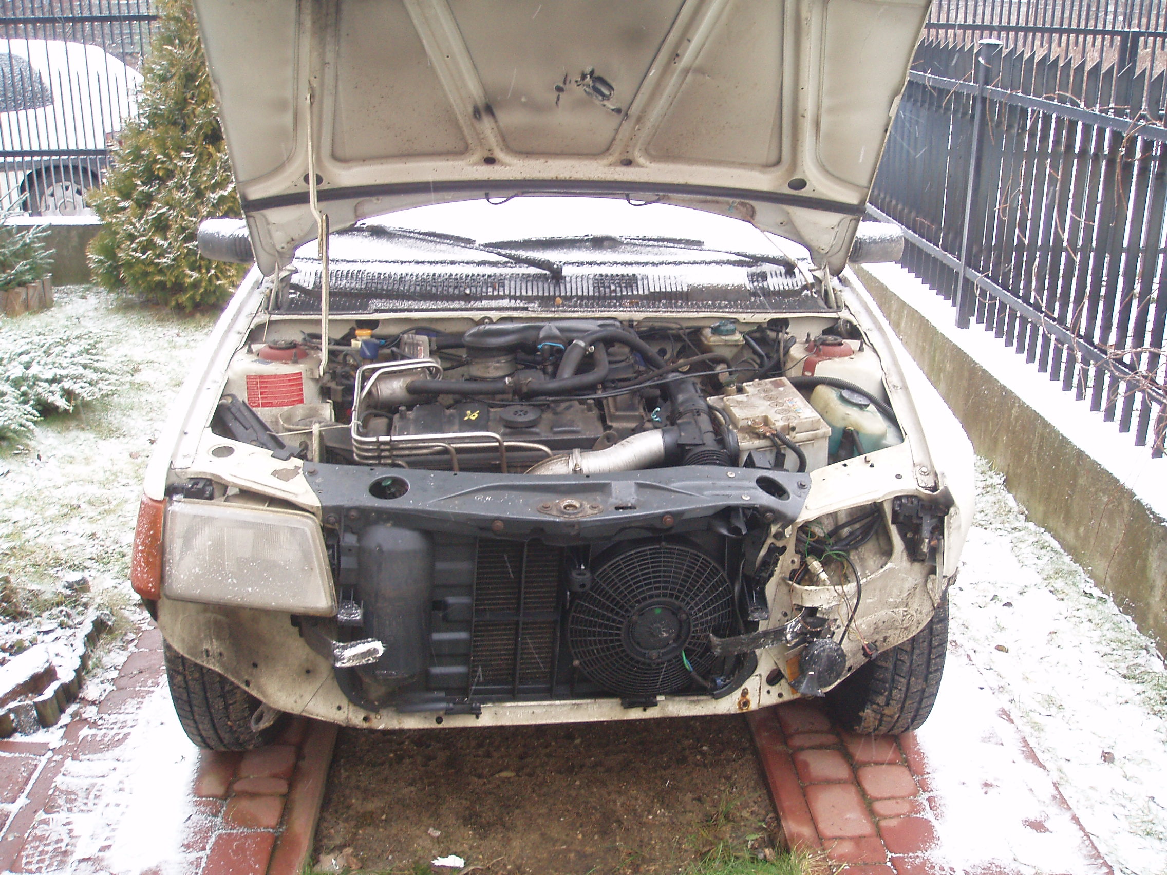 trochę się popsuł, szkoda bo autko 1.4 na gaźniku :twisted: z nowymi oponami, tłumikiem, gazem, nowe hamulce, świeżo po przeglądzie i po OC. Trzepnąłem w forda focusa.