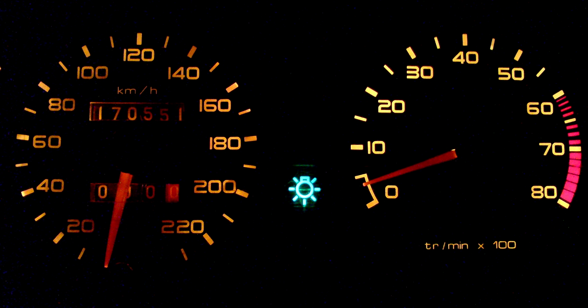 Teraz świecą sie wszystkie kontrolki, przyciemnianie, i zerowanie licznika.