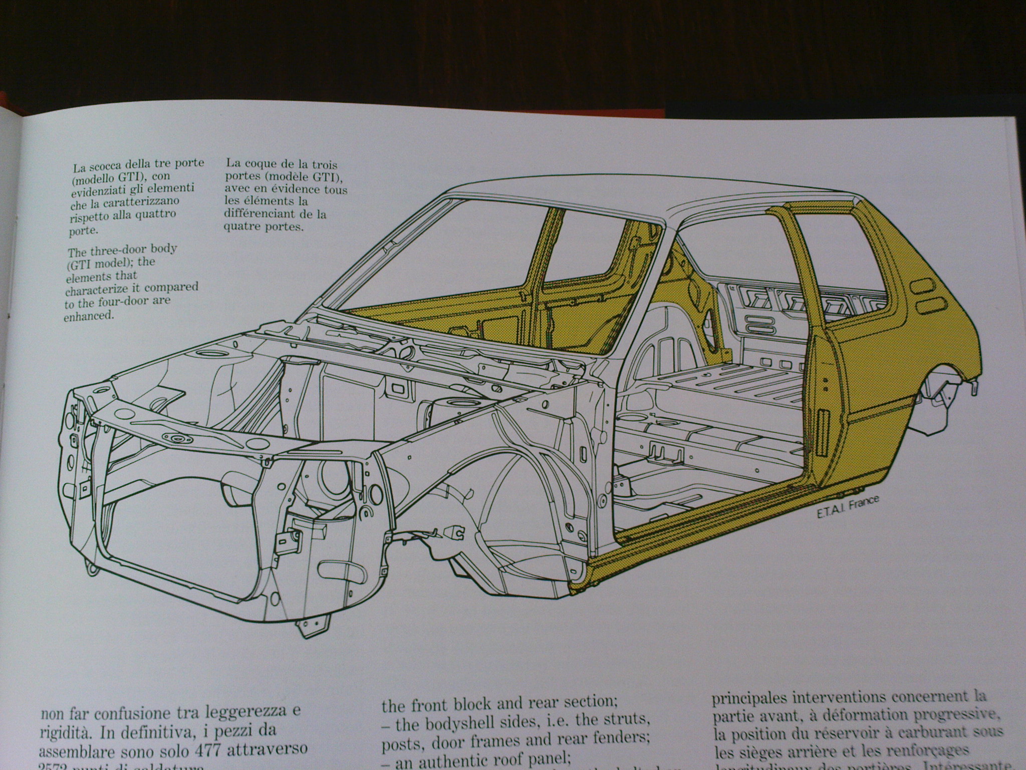 Osiem, może tak być przez to że boczne ćwiartki różnią się w wersji GTI, całkiem możliwe, że są bardziej zaokrąglone, kształt nadkola jest bardziej wycięty tak żeby umożliwić zamontowanie poszerzeń i większych felg z tyłu. Poniżej fotka czym różni się buda od GTI, elementy zaznaczone na żółto. Skoro klapa w GTI jest inna to i ćwiartki równie dobrze mogą być inne, tak żeby pasowały do klapy w GTI ? :shock: A może tylko wycięcia w nadkolach są różne, reszta jest taka sama !! Zgłupieć idzie