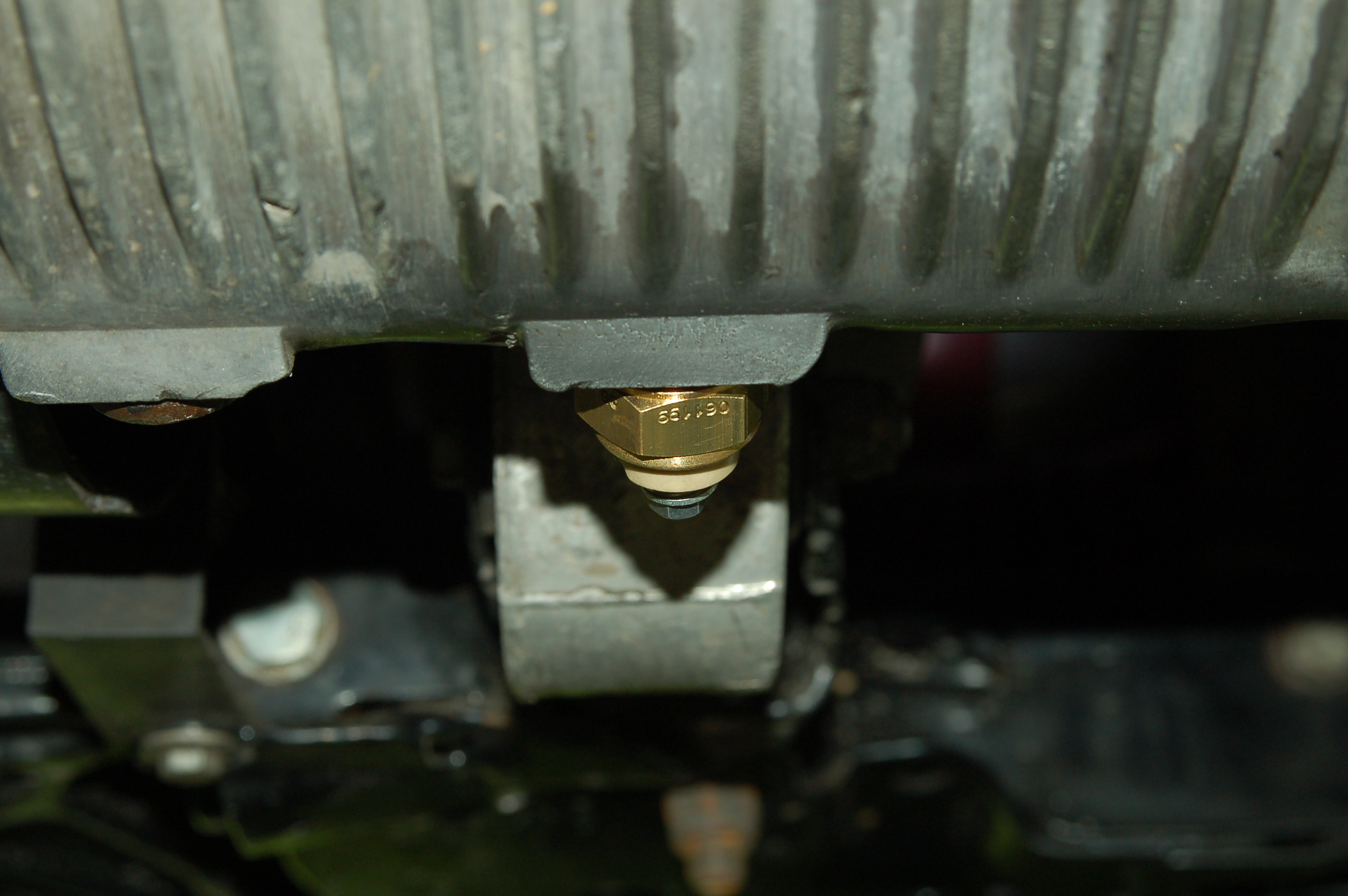Gdy kropelkowanie z miski praktycznie ustąpiło , wymieniłem stary czujnik temperatury oleju na nówkę ( patrz foto ), zakręciłem korek spustowy i przykręciłem nowy filtr ( patrz zdjęcia ).